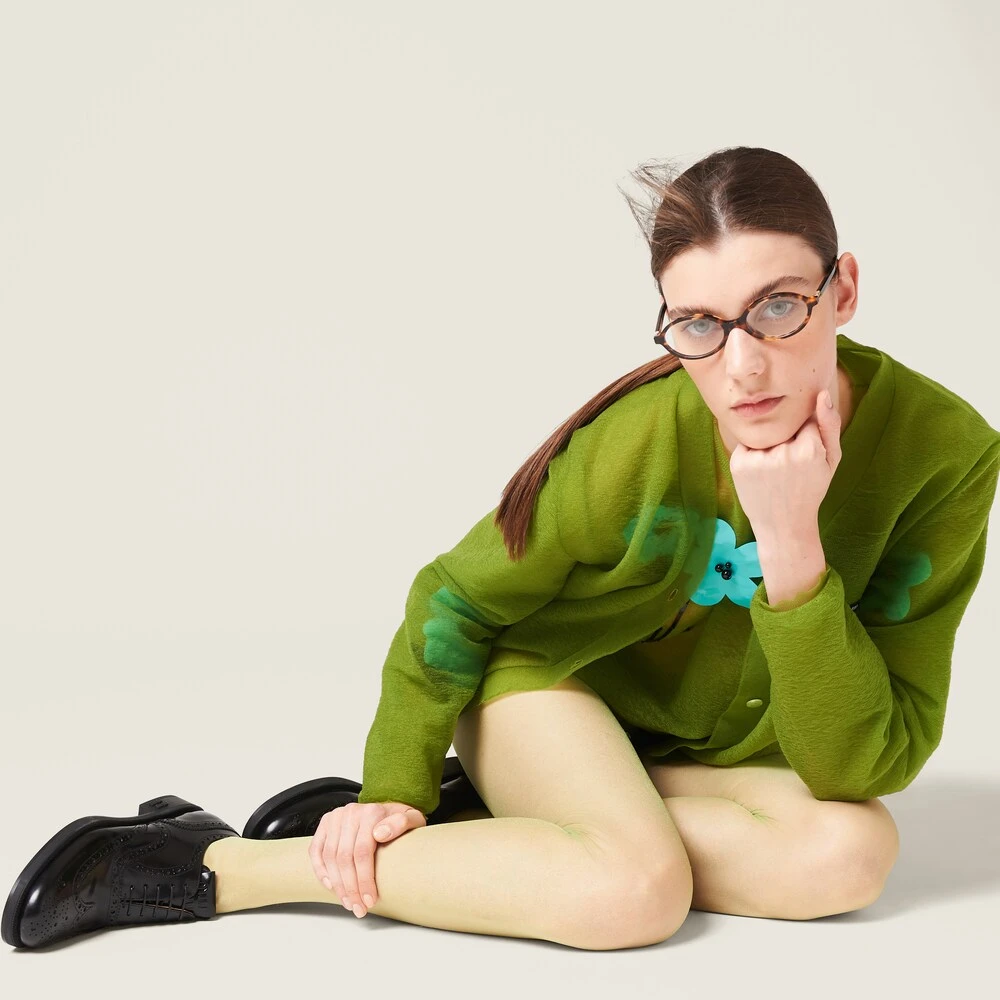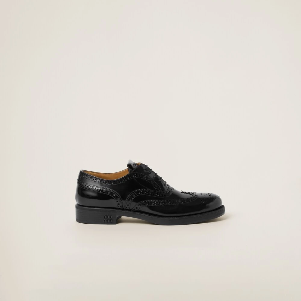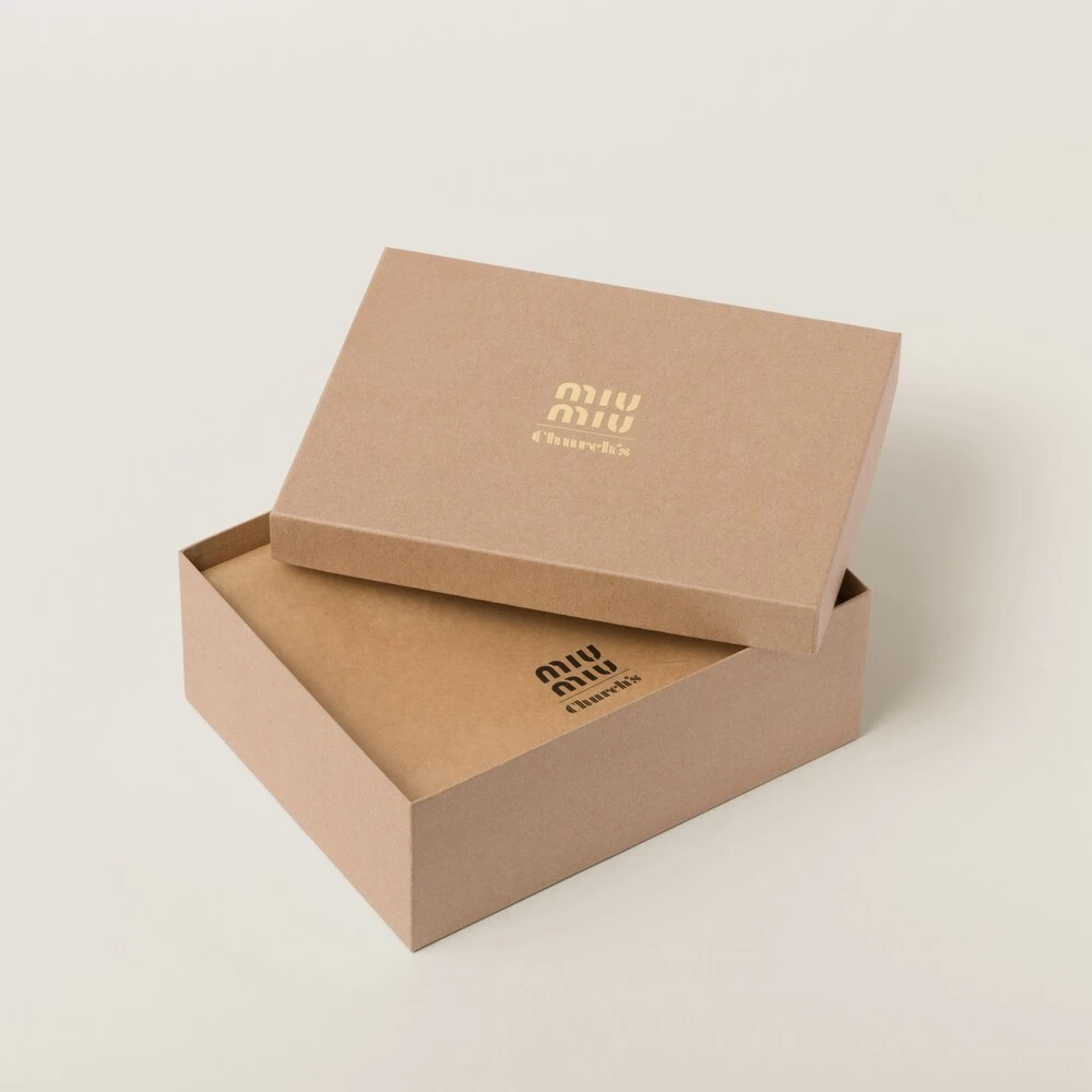The iconic contradiction between masculine and feminine and between classic and modern becomes a harmonious dialog between two aesthetically different worlds. Church’s X Miu Miu Oxford Brogue shoes have an iconic design and finely crafted artisan finishes paired with Miu Miu’s rebellious soul to create an original look that encourages unconventional combinations untethered from classic style. The tonal Miu Miu logo stands out on the tongue and heel, adding its signature touch to this collaboration. Finally, the rubber sole ensures that the shoe is light and flexible for a comfortable fit.