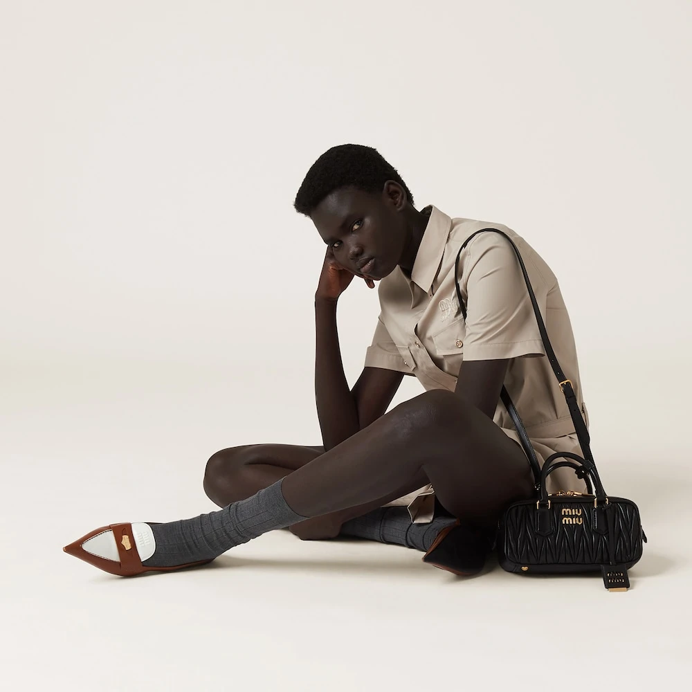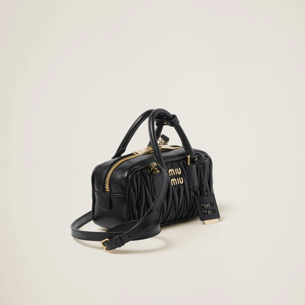 Precious matelassé workmanship revisits the classic silhouette of the top-handle bag thanks to its three-dimensional, textured, and extremely sophisticated effect. The lettering logo on the front that echoes different metallic finishes of the hardware stands out against the artisan motif with an iconic and immediately recognizable touch. The dynamic and elegant lines and the adjustable, detachable shoulder strap contribute to the versatile, functional and modern design of the bag.