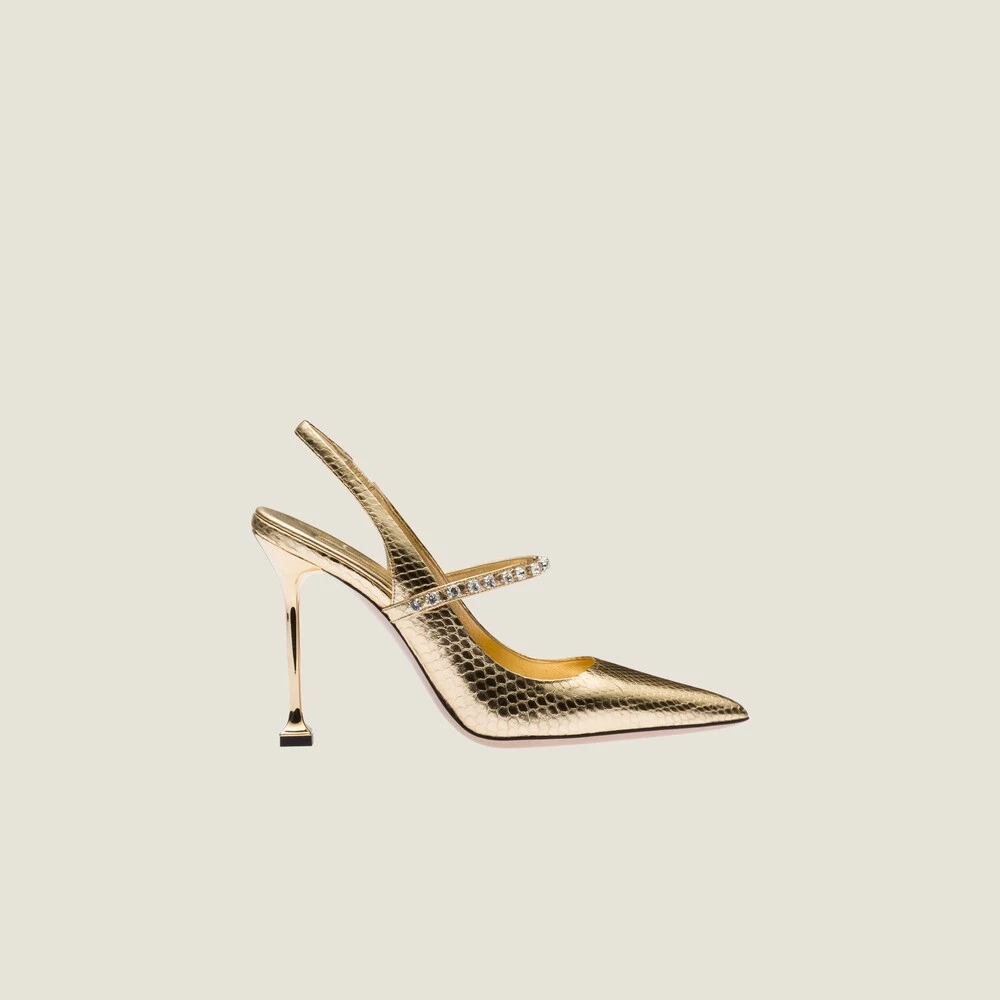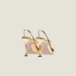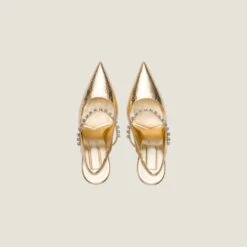 The crystal stone embellishment and refined leather give these slingback pumps an elegant appearance and a luxurious look. The sleek lines make these shoes versatile and contemporary.