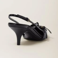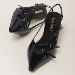 A classic style meets Miu Miu’s rebellious soul in these brushed leather slingbacks. The buckles introduce a refined contrast and add an irreverent touch to the shoe, giving it a strong personality.