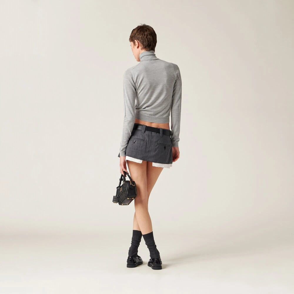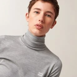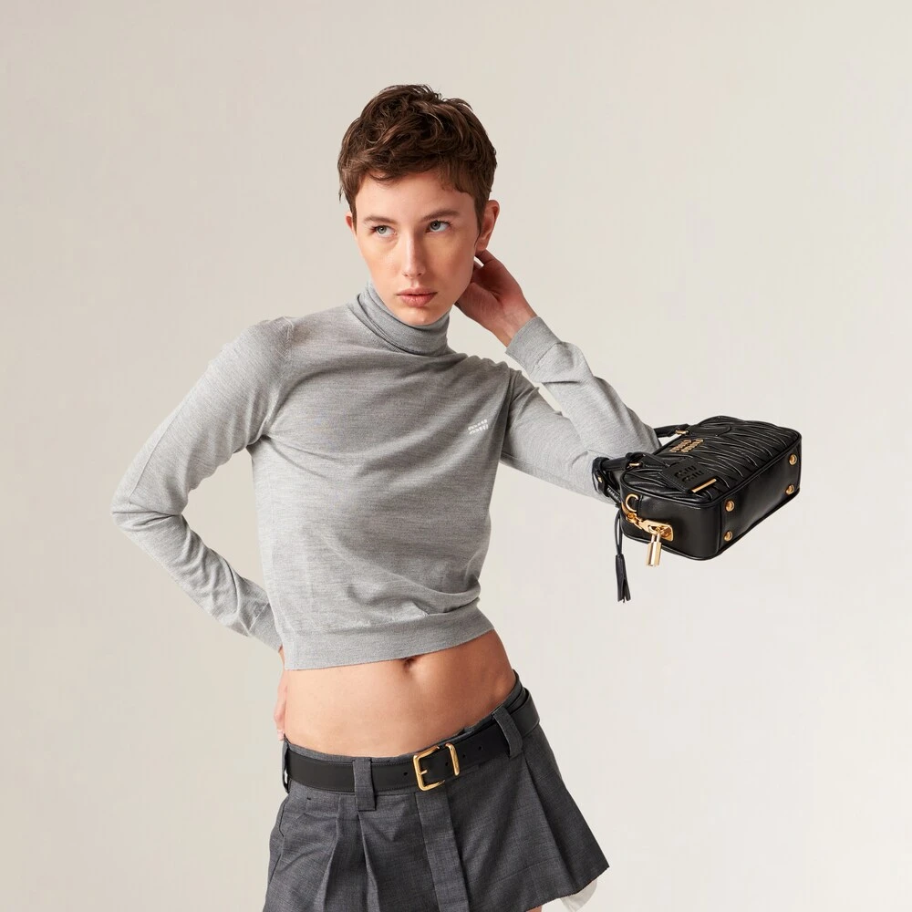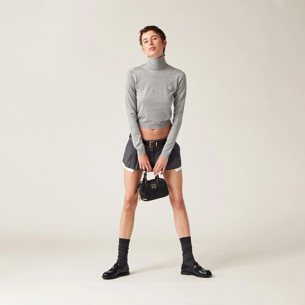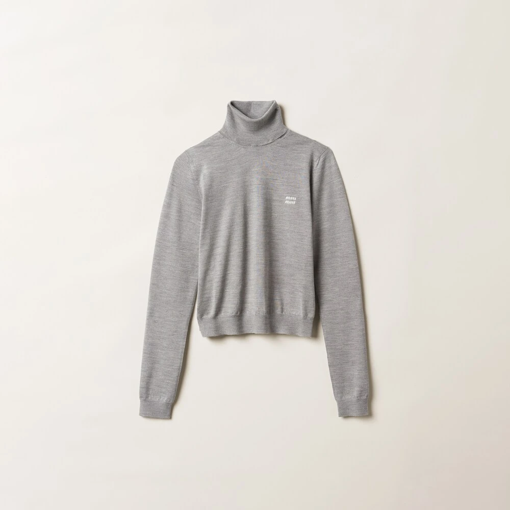 The soft, cozy touch of cashmere and silk meets the sleek lines and cropped cut of this sweater. The intarsia logo completes the look with a refined contrast and iconic note.
