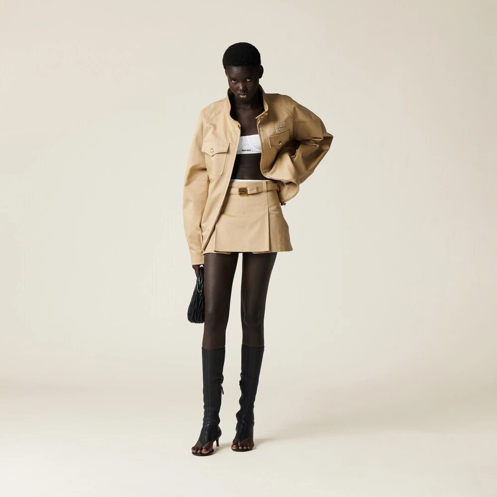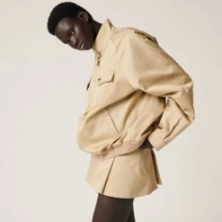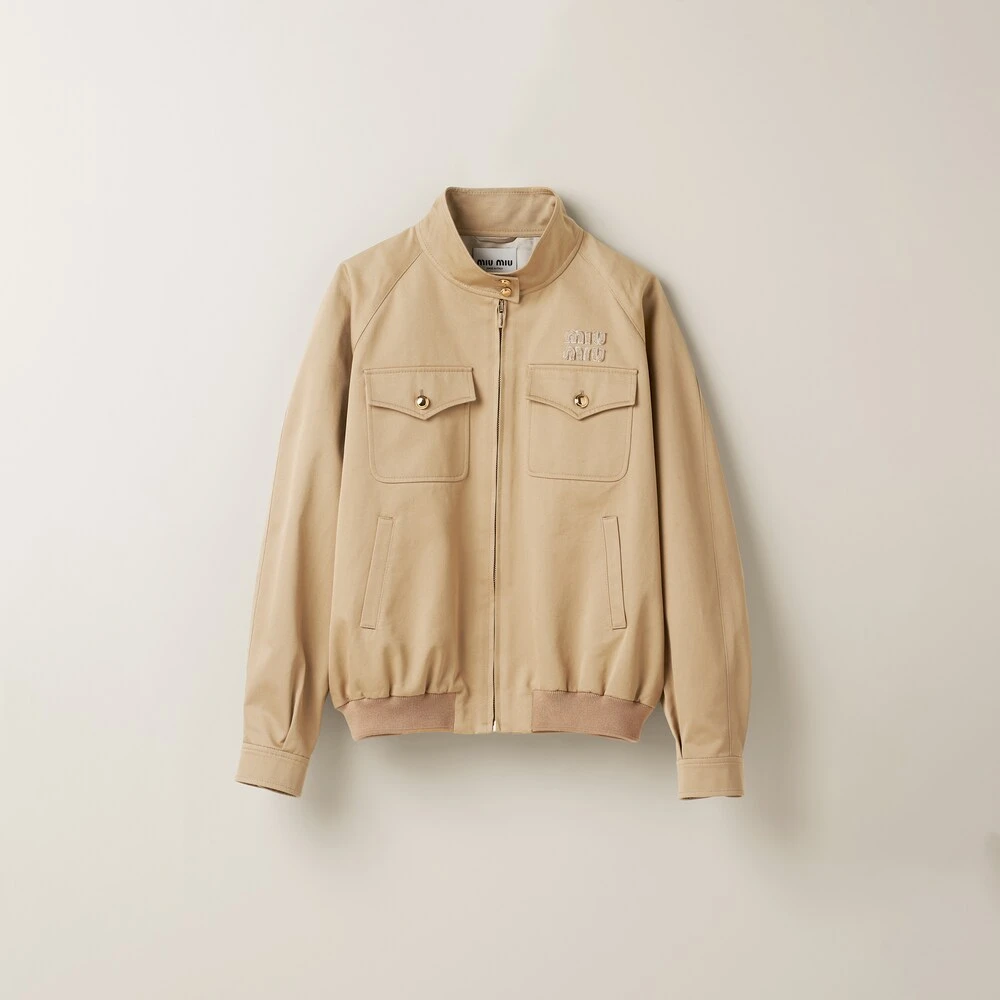 This chino blouson jacket is characterized by its casual, dynamic and versatile personality. The stand-up collar adds a refined detail while the embroidered logo completes the design with a distinctive, iconic note.