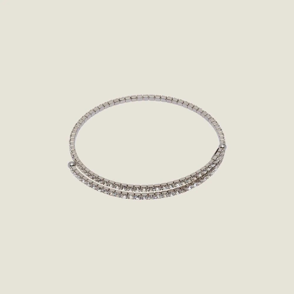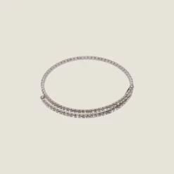 Sparkling crystals embellish the slim silhouette of this elegant metal choker with adjustable sizing.