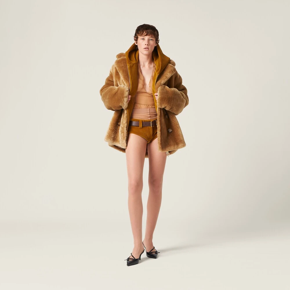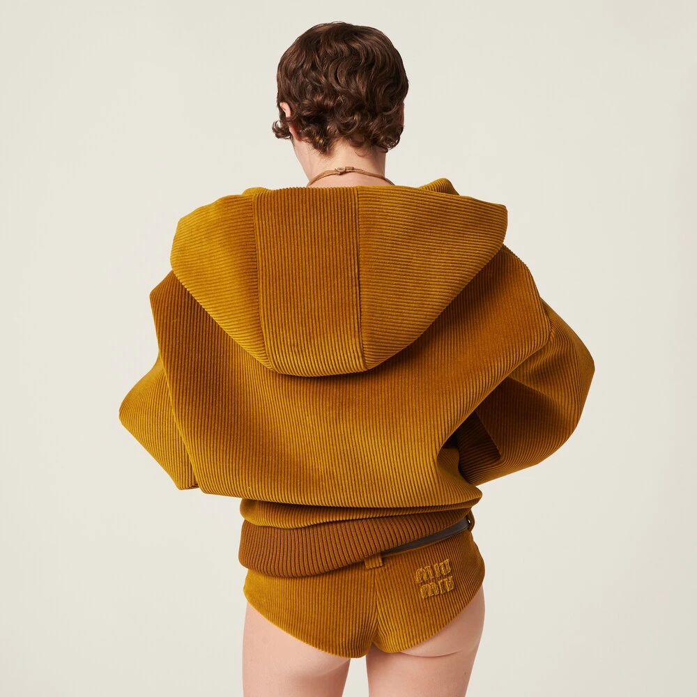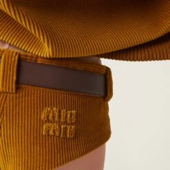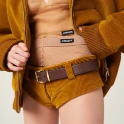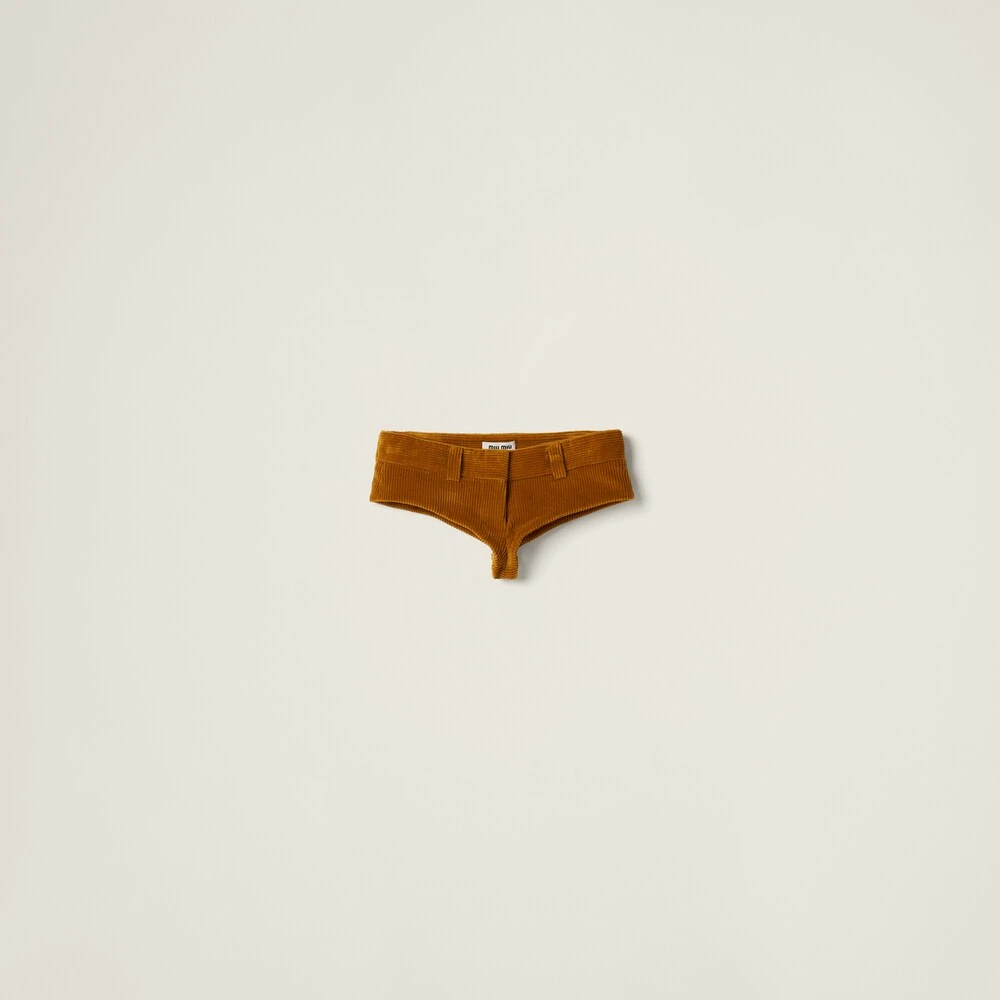 These corduroy shorts are characterized by their refined style and extremely contemporary look. The iconic style of the Miu Miu logo completes the garment.