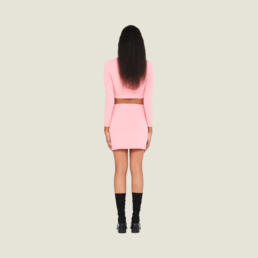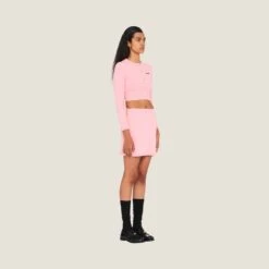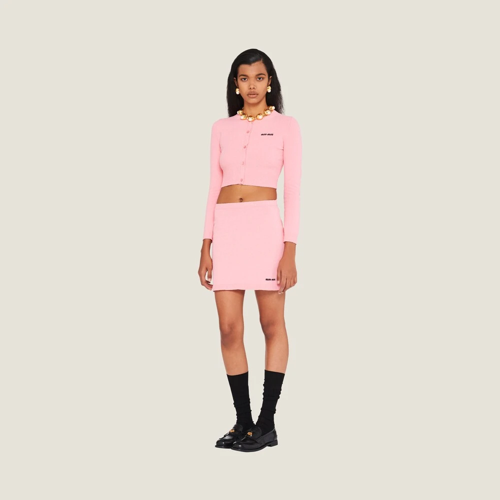 This sleek silhouette is decorated with the Miu Miu intarsia logo. Classics reinterpreted with sophisticated details represent the freest expression of Miuccia Prada’s creativity.