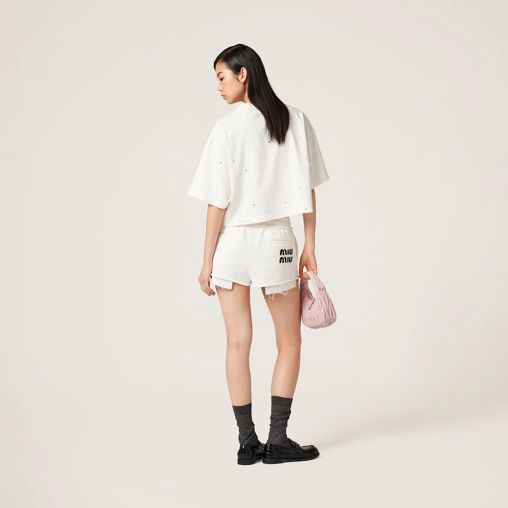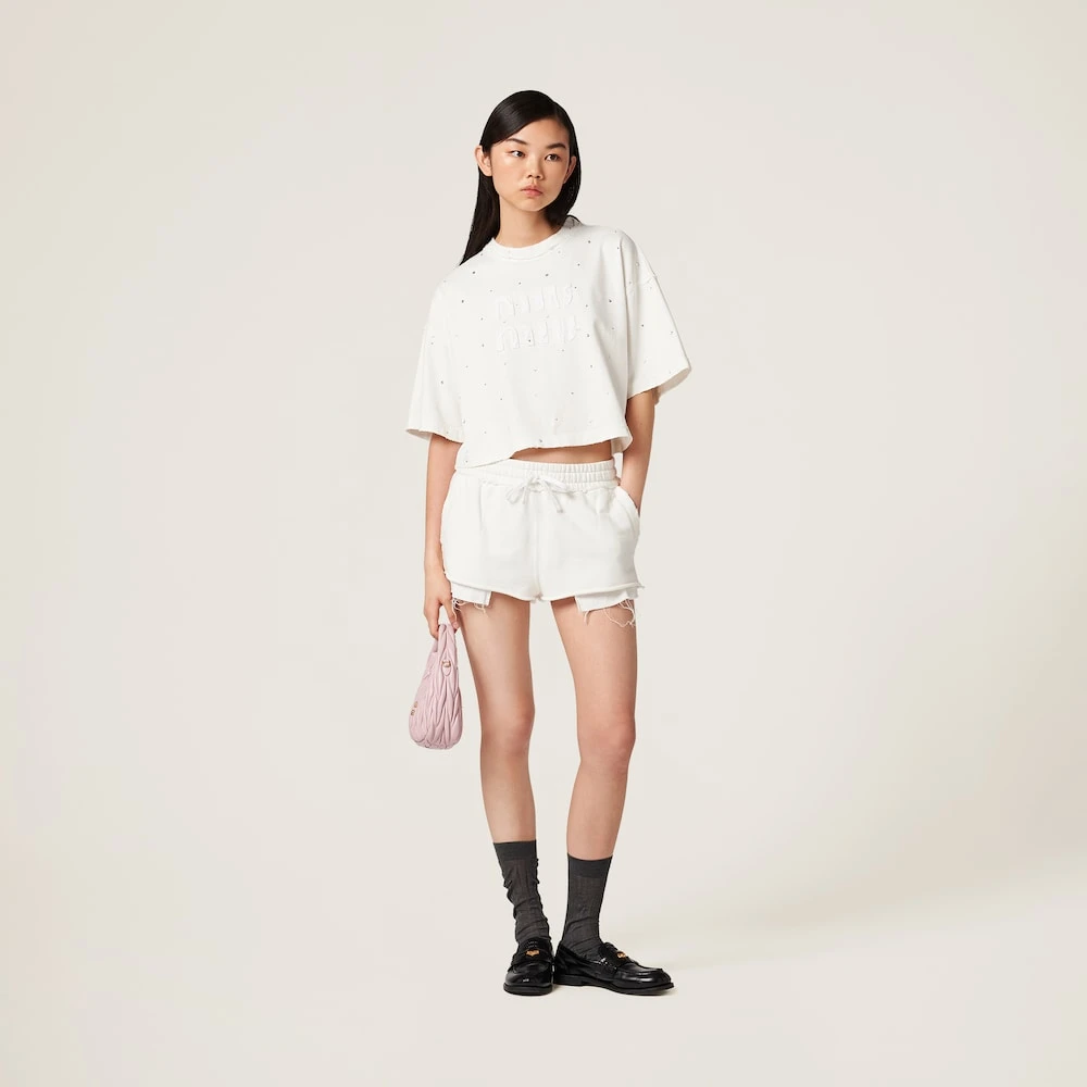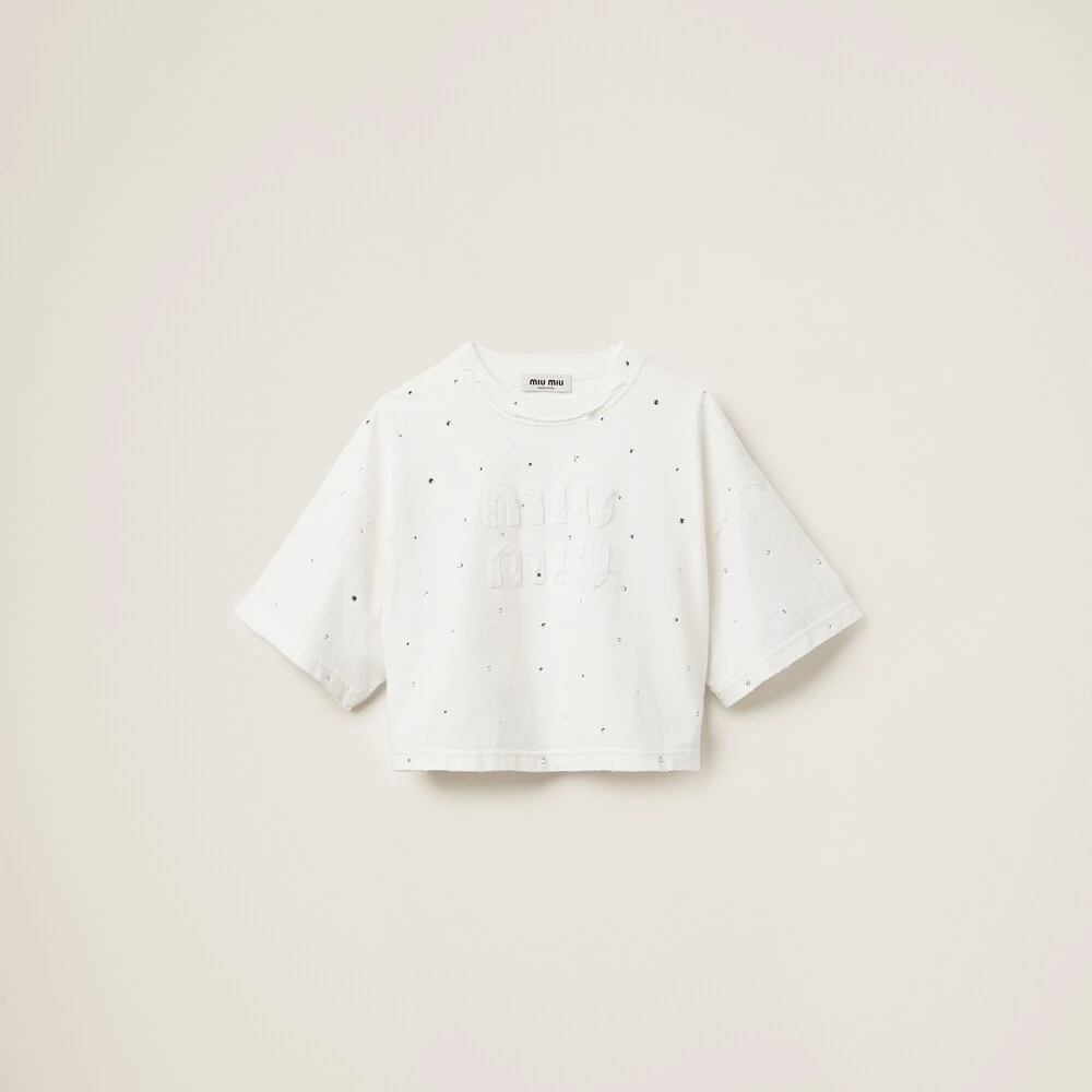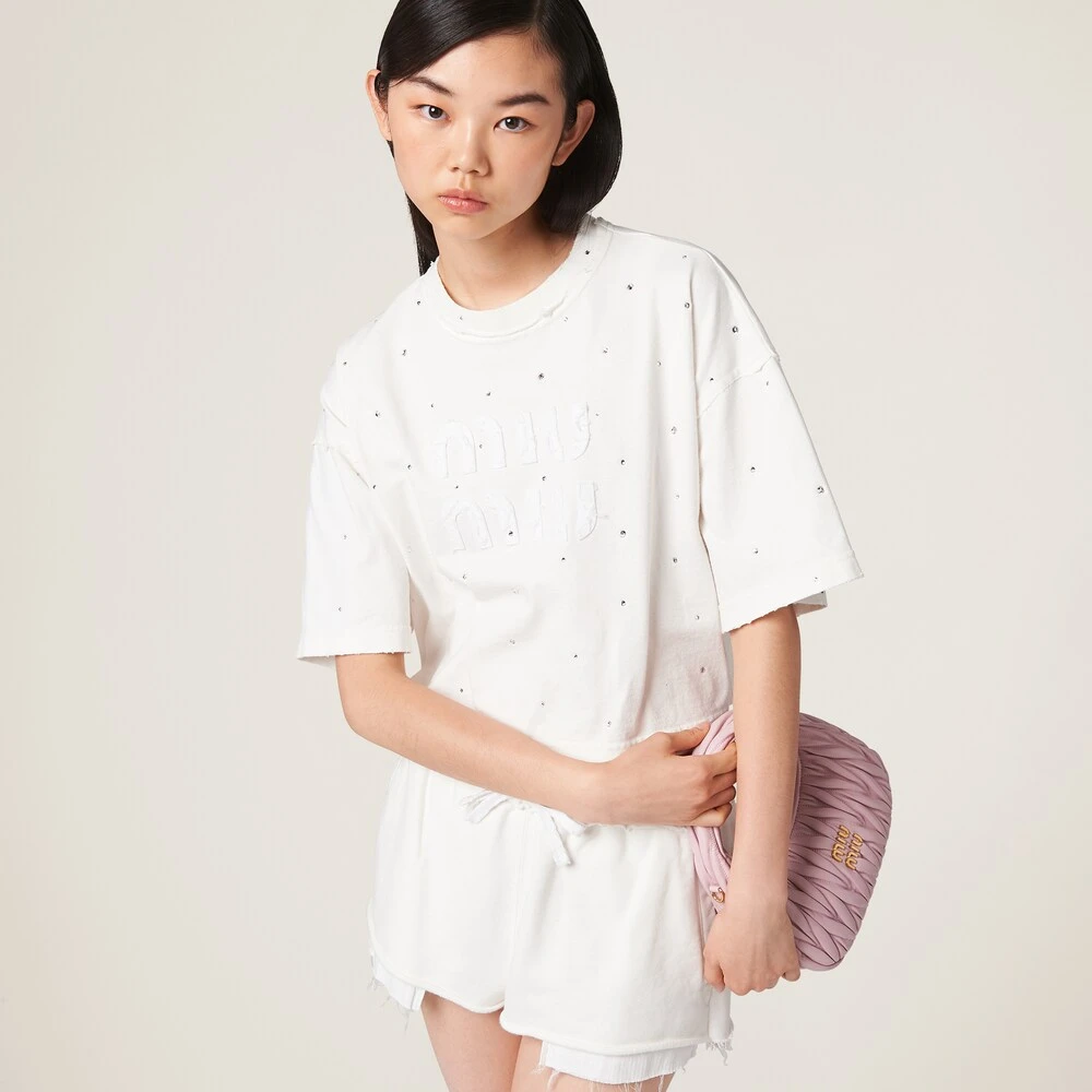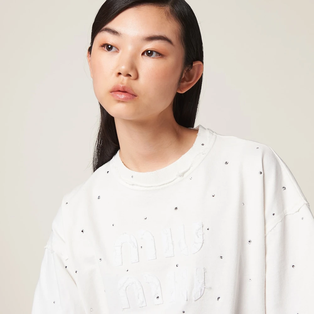 Decorated with shiny crystals, this T-shirt embodies modern, clean-lined style. Made from cotton with long sleeves and a loose fit.