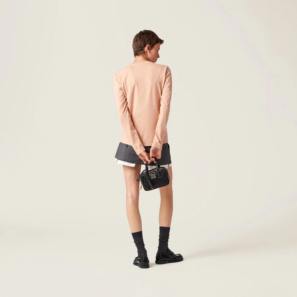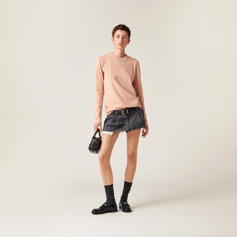 The simple style of this cotton tee is enhanced by Miu Miu’s distinctive personality. The logo label stands out on the monochromatic garment with an iconic note.