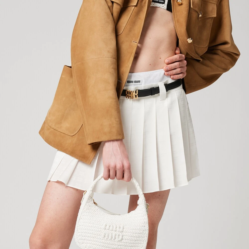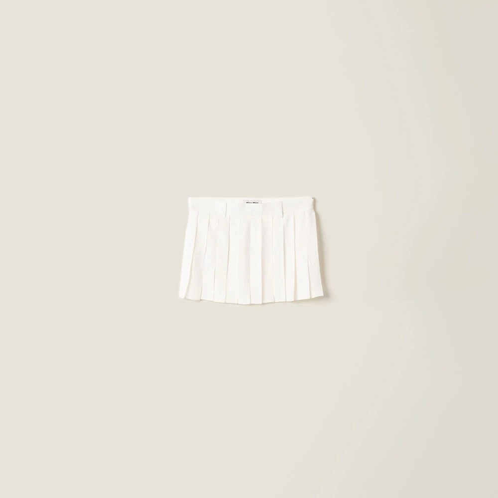 This crepe de chine miniskirt expresses a dynamic aesthetic and an irreverent and distinctive femininity. Pleating adds movement and, together with the mini silhouette, gives the garment a distinctly contemporary look.