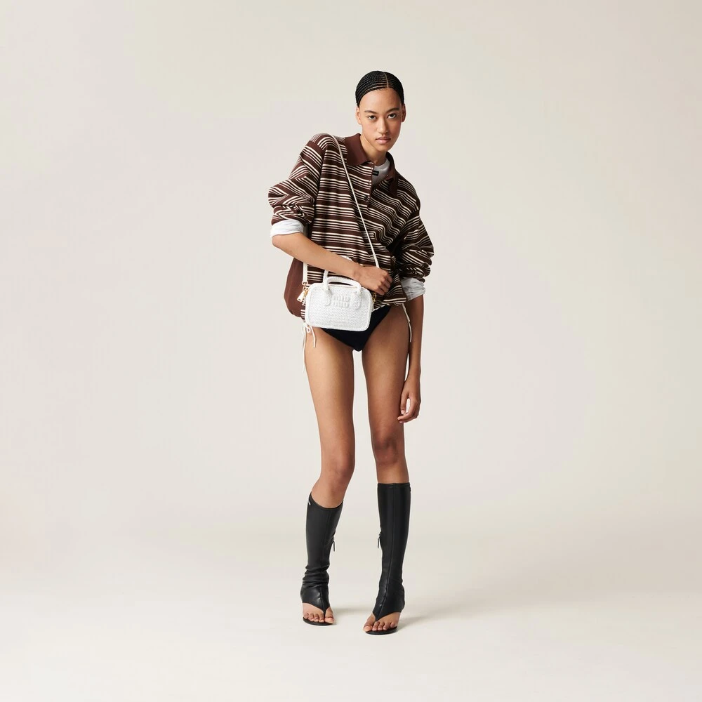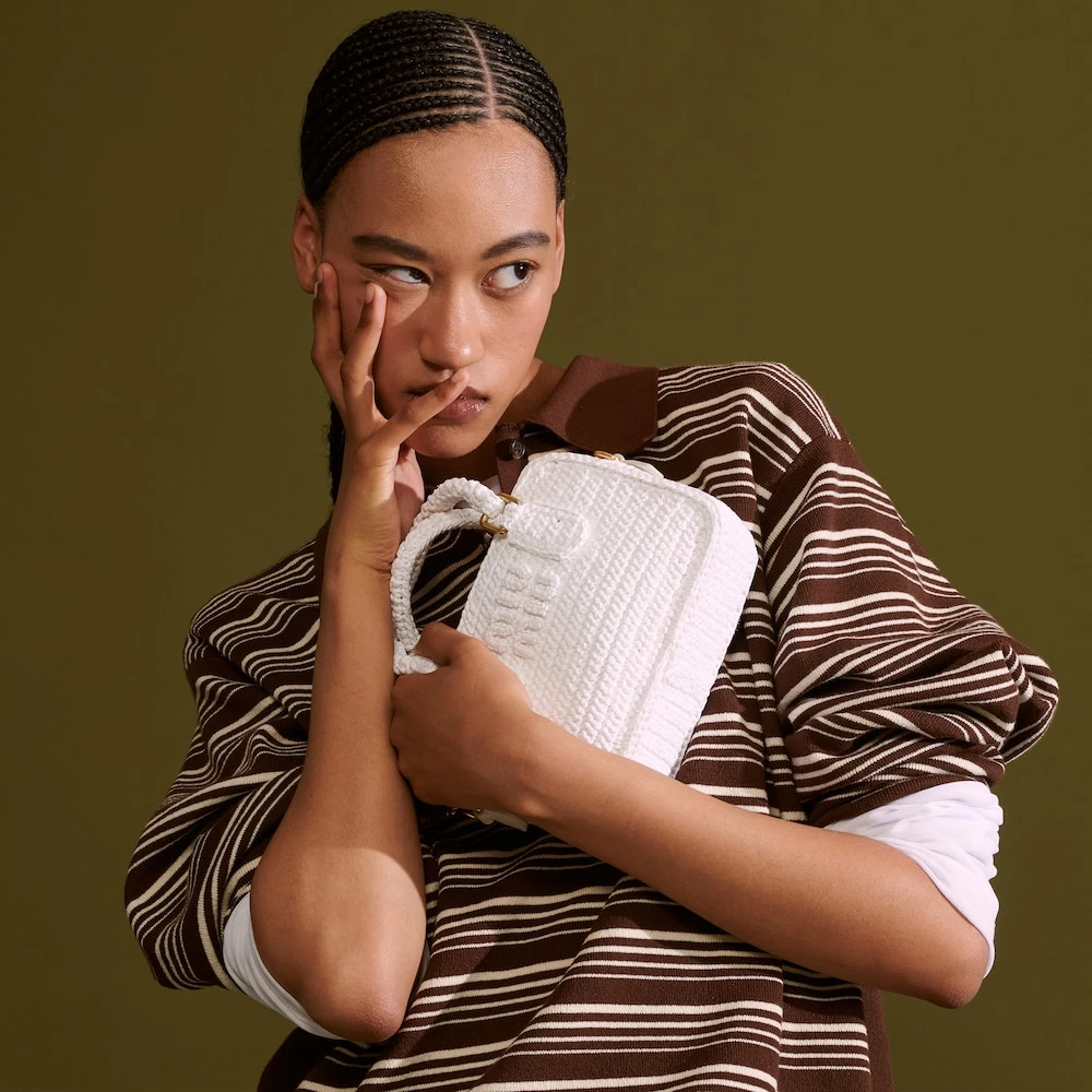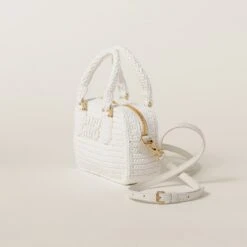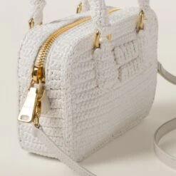 Quality, sophistication, and originality are the buzzwords behind this crocheted top-handle bag. Fine crochet workmanship gives the accessory a special design, accented with the tonal leather shoulder strap, the gold-tone hardware that adds shiny touches, and the lettering logo on the front that decorates the top-handle bag with an iconic note.