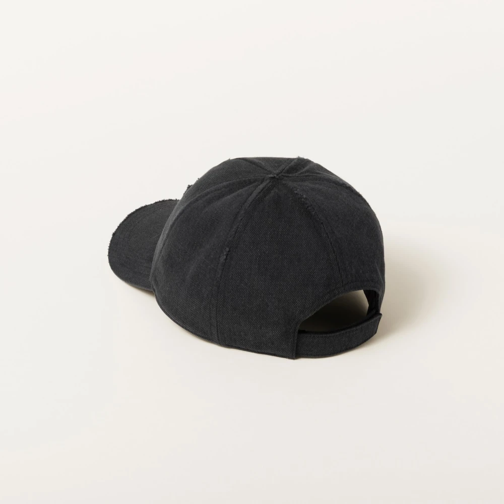 The sporty inspiration of the baseball cap meets Miu Miu’s bold personality and cosmopolitan style. The tonal embroidered logo completes the design with an iconic note.