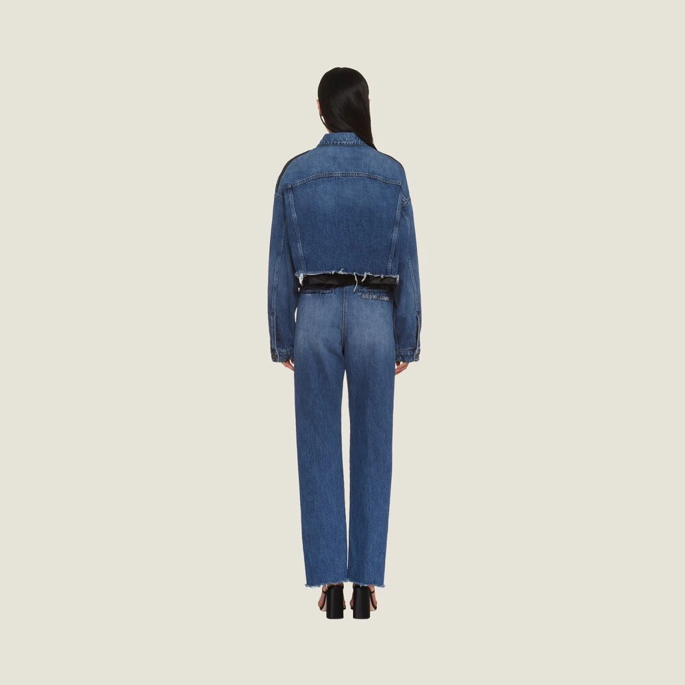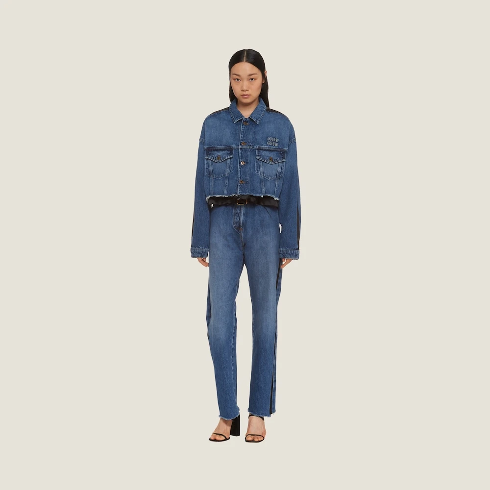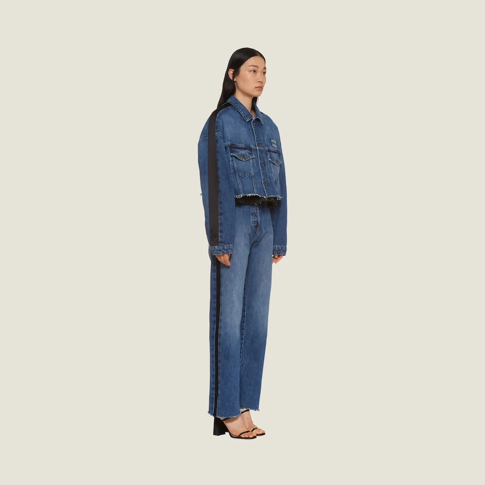 Classic denim is reinterpreted with a whimsical touch and becomes the expression of feminine rebellion. The raw-cut hem is an example of an evolving construction and deconstruction process, a new perspective on the classic wardrobe.