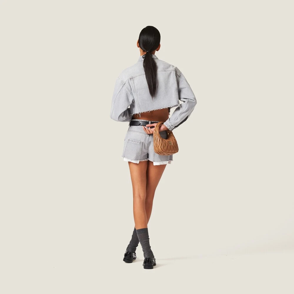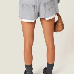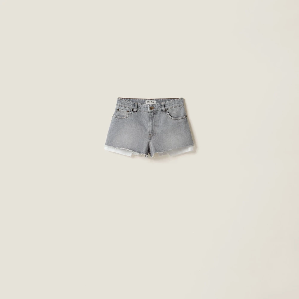 The timeless character of denim meets bold Miu Miu style in these shorts. The visible pocket lining adds an edgy, casual detail to the garment while the embroidered logo stands out with an iconic note on one of the rear pockets.