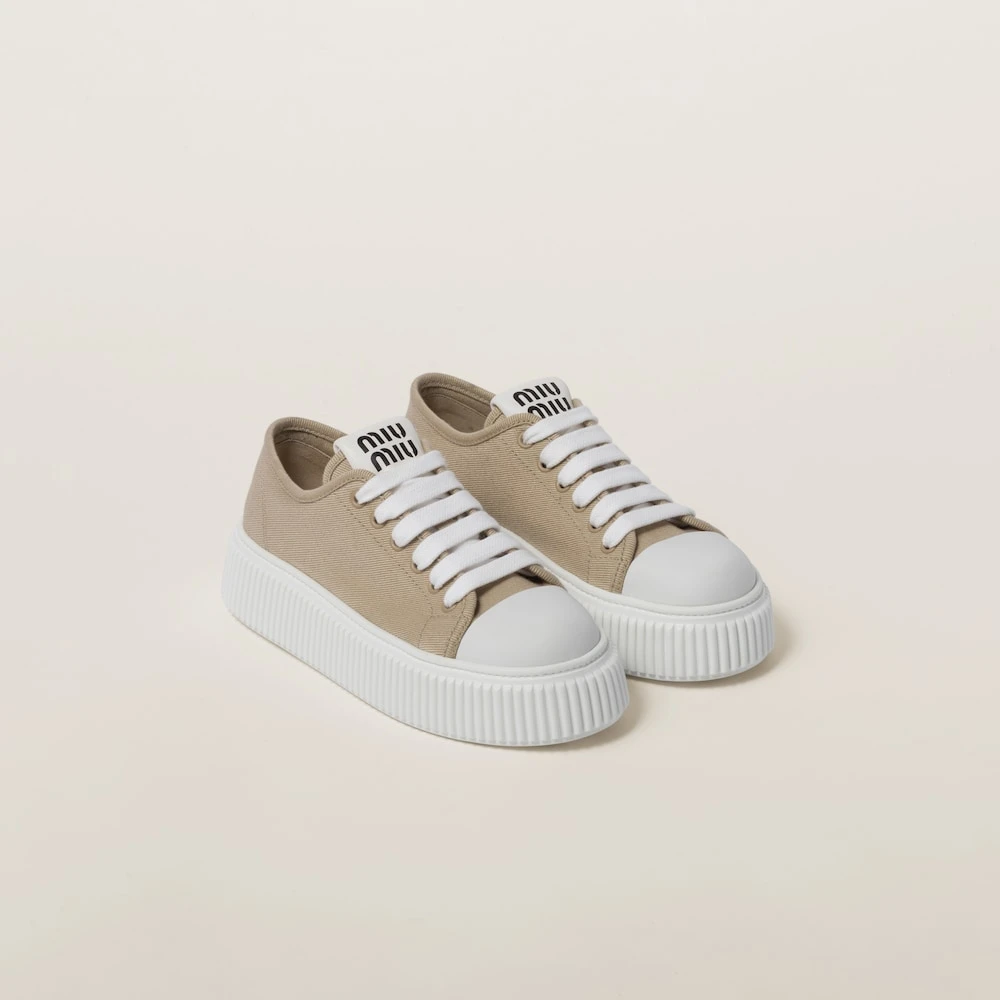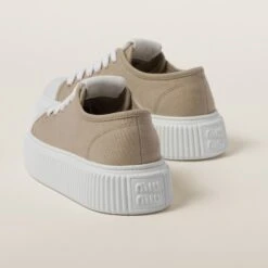 Timeless denim is influenced by captivating Miu Miu style to create these new sneakers. The screen-printed logo on the tongue adds a refined contrast and enhances the shoe with an iconic touch. The platform sole helps to define the distinctively bold and contemporary style.