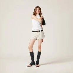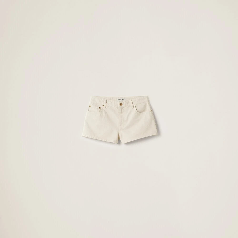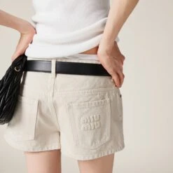 The timeless character of denim meets Miu Miu’s relaxed and effortless femininity in these new ecru denim shorts. The sleek, relaxed lines are enhanced by the logo embroidered on the back pocket that completes the look with an unexpected distinctive note.