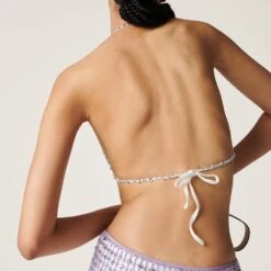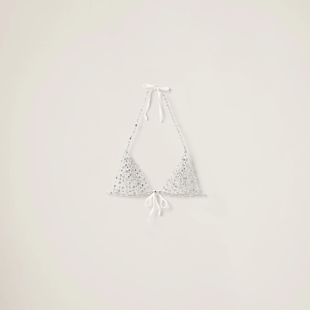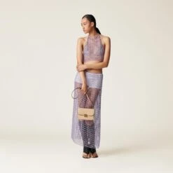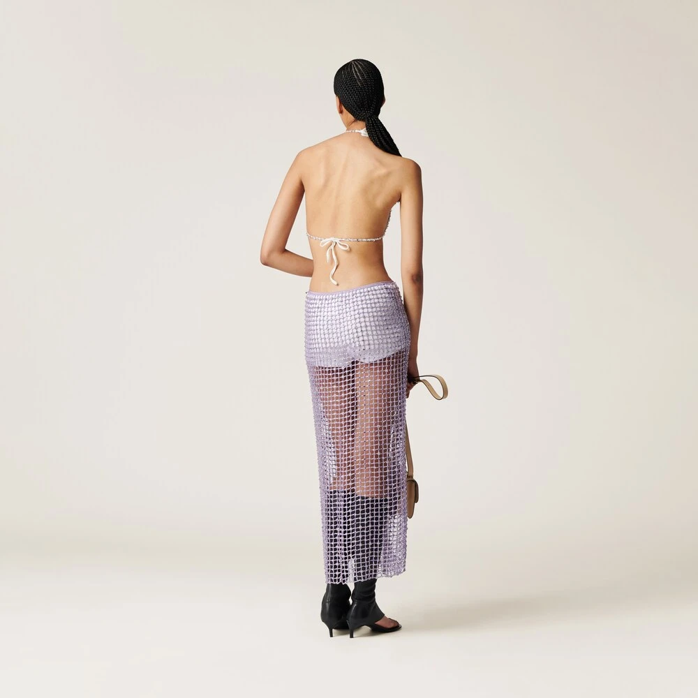 This top is characterized by its captivating, sensual aesthetic. Classic crochet accompanied by precious embroidery resembles mesh, giving the garment an extreme lightness and making it idea for layering. The lining makes it particularly comfortable to wear.