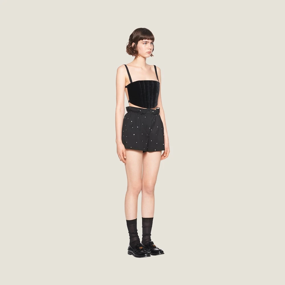 Sophisticated embroidery embellishes and illuminates the silhouette of these grain de poudre shorts.