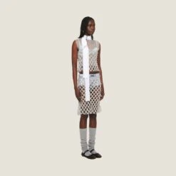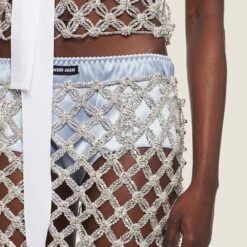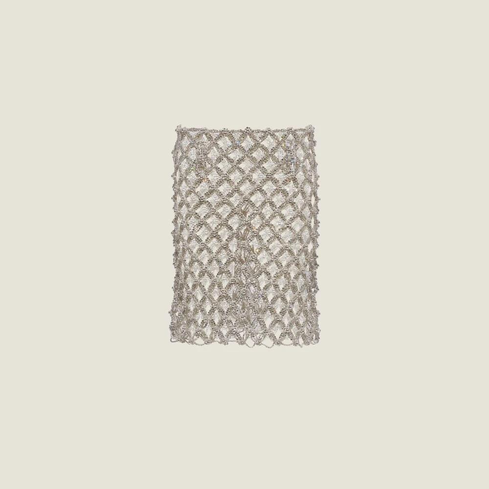 A sophisticated and modern tribute to the Roaring Twenties, this skirt with a mesh design reinterprets the classic idea of embroidery. Absolutely elegant, it perfectly blends an industrial and artisanal dimension.