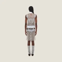 A sophisticated and modern tribute to the Roaring Twenties, this top with a mesh design reinterprets the classic idea of embroidery. Absolutely elegant, it perfectly blends an industrial and artisanal dimension.
