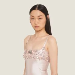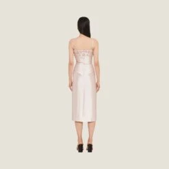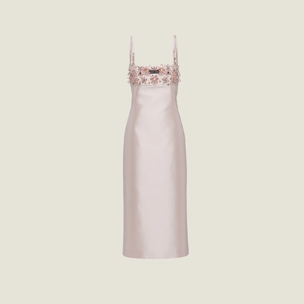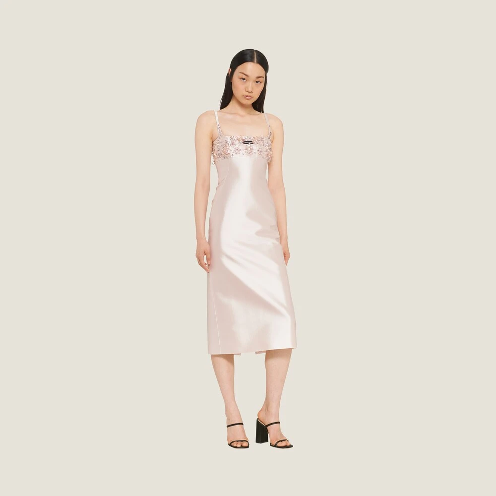 Modernist elegance and precious embroidered details mix in a harmonious play of contrasts and references between evening wear and new feminine territories.
