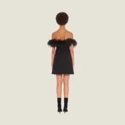 - Marabou feather embellishment on the neckline