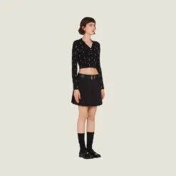Refined and seductive knitwear features a silhouette with contemporary elements. This cardigan made of fine wool is characterized by the sparkling embroidery that animates the design.