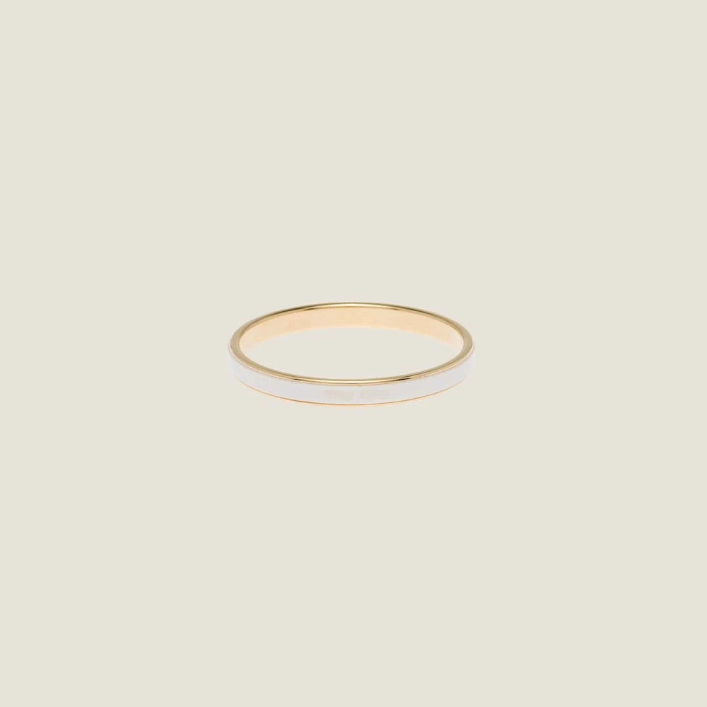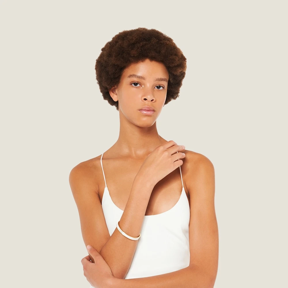 The Miu Miu logo becomes the protagonist of a selection of enameled metal bracelets. It stands out as an iconic symbol, giving the accessory modern allure.