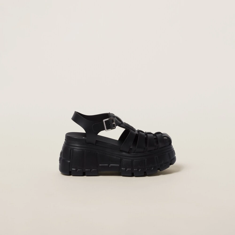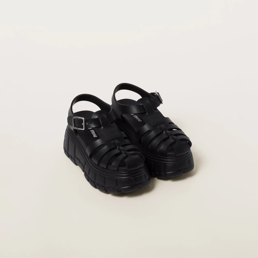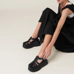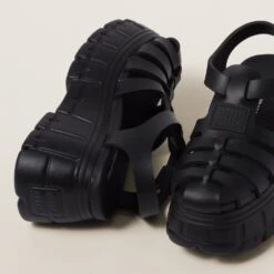 The classic fisherman sandal is reinterpreted and presented in new volumes and silhouettes. These sandals made of EVA are characterized by the oversized platform and ankle strap with buckle.