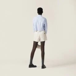 The sleek lines of these gabardine Bermudas are accented with sporty details like the elasticized drawstring waist. The logo label completes the design with a distinctive note.