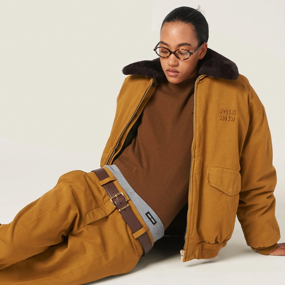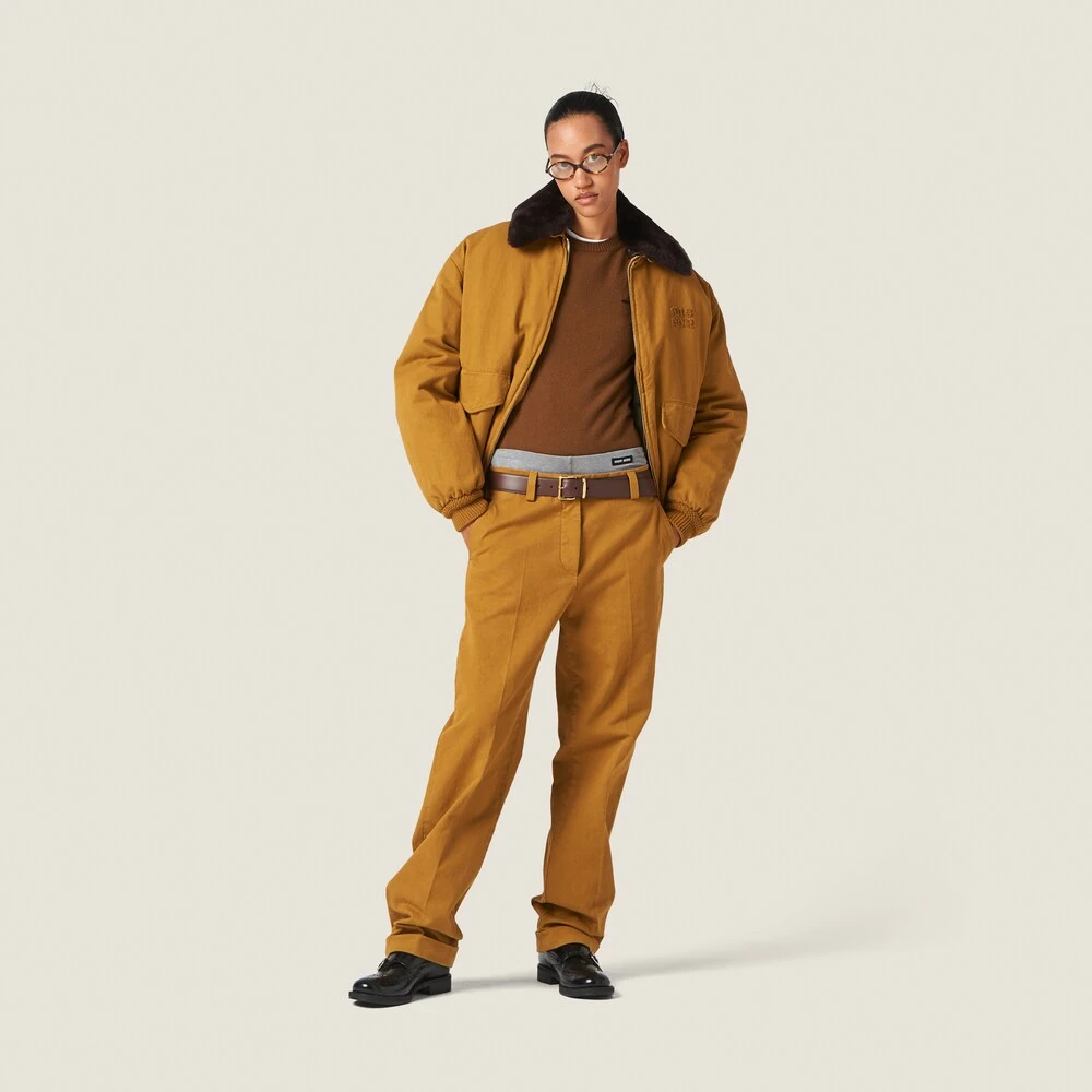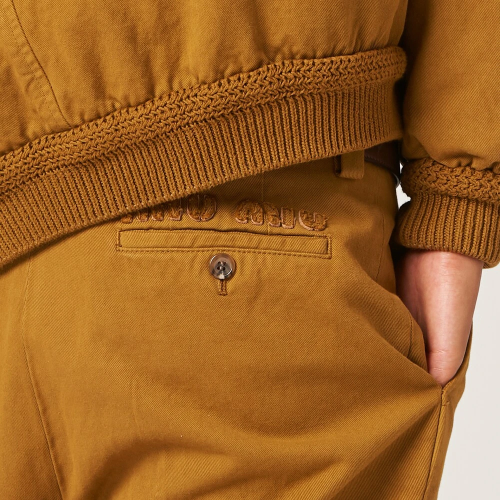 Masculine inspirations meet Miu Miu’s relaxed femininity in these pants. The tonal embroidered logo completes the look with an unexpected distinctive note.