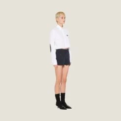 Relaxed, casual femininity characterizes these new garment-dyed drill Bermudas. The casual, contemporary style of the garment accompanies the embroidered logo that completes the design with an iconic note.