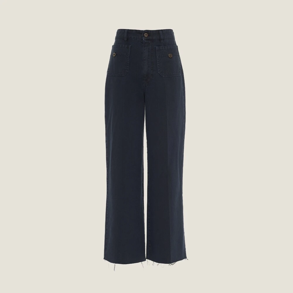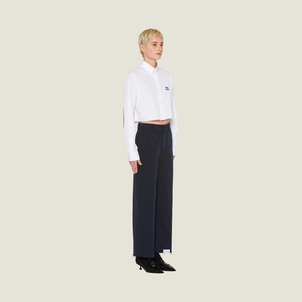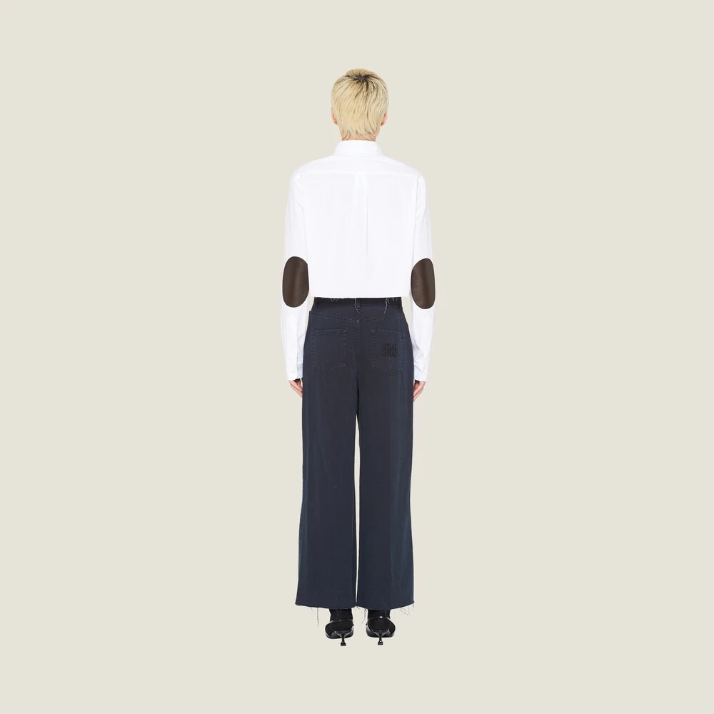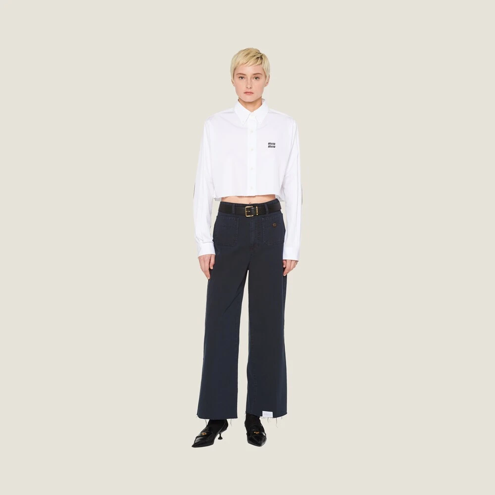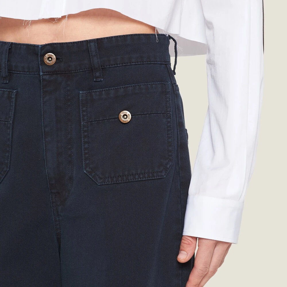 Relaxed, casual femininity characterizes these new garment-dyed drill pants. Wide, straight lines accompany the modern style while the embroidered logo completes the design with an iconic note.