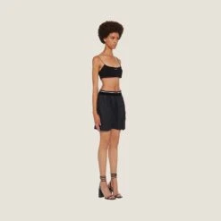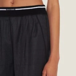 These Glen Plaid Bermuda shorts feature a classic design and sporty details. Between austerity and streetwear inspiration, this style is embellished with a knitted elasticized waist with intarsia logo lettering. Miu Miu reinterprets femininity through modernity, creating new aesthetic expressions that combine tradition and rebellion.