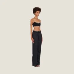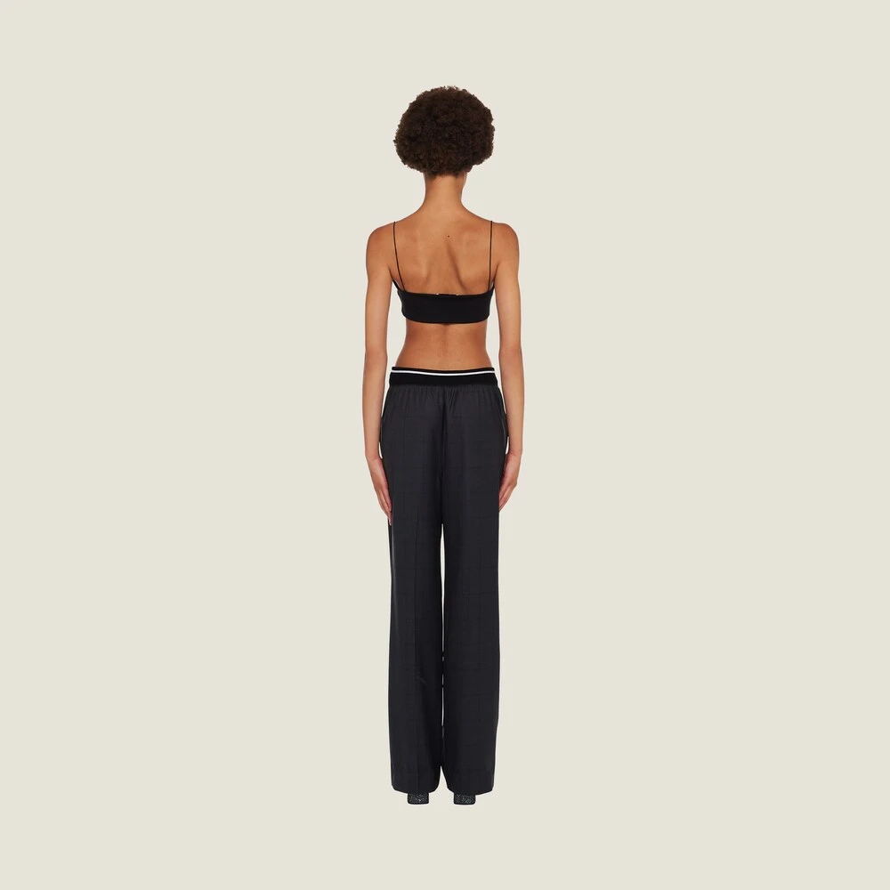 These Glen Plaid pants feature a classic design and sporty details. Between austerity and streetwear inspiration, this style is embellished with a knitted elasticized waist with intarsia logo lettering. Miu Miu reinterprets femininity through modernity, creating new aesthetic expressions that combine tradition and rebellion.