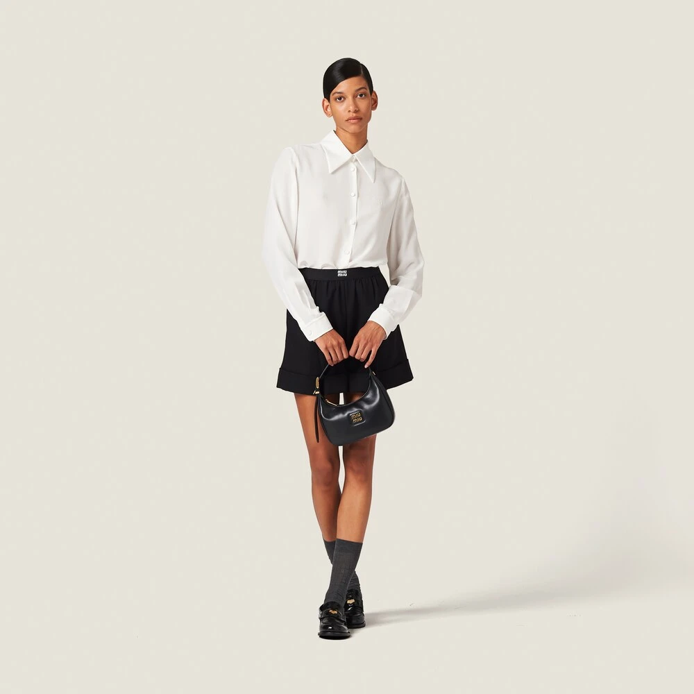The textured surface of grain de poudre is combined the modern silhouette of these Bermudas. The logo-print elastic adds an iconic note to the garment.