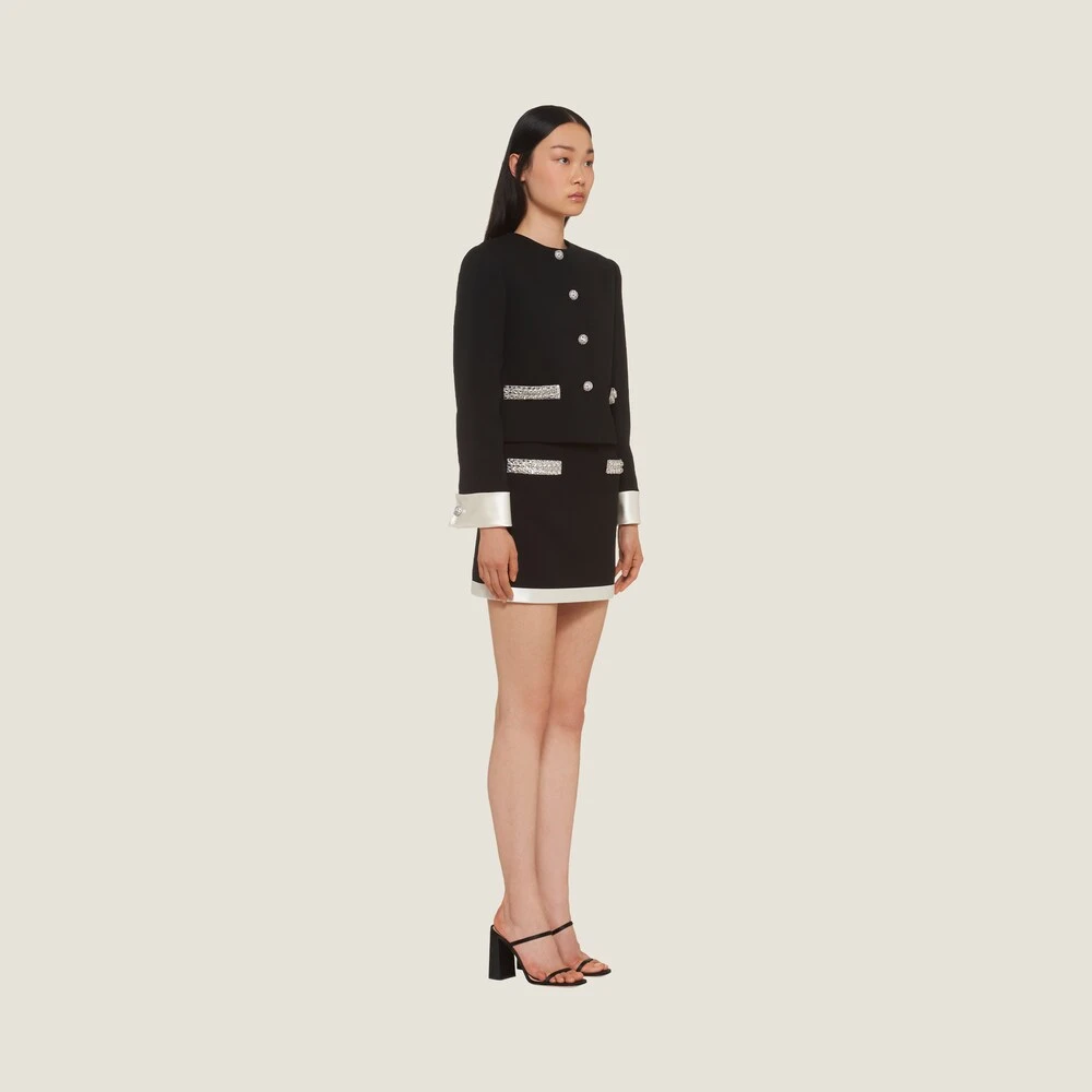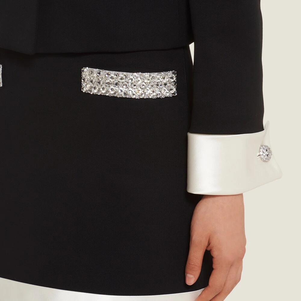 The sophisticated details and design that evokes retro motifs bestow an ultra-feminine austerity. Miu Miu explores the complexity of the evening wardrobe, reinterpreting classic principles with new aesthetic rules.