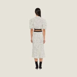 Fluid, feminine textures embrace a romantic attitude in this new crepe de chine midi skirt. Lots of hearts in vibrant shades almost completely cover the garment, while the elasticized waistband with logo adds a refined chromatic contrast and completes the skirt with a distinctive note.