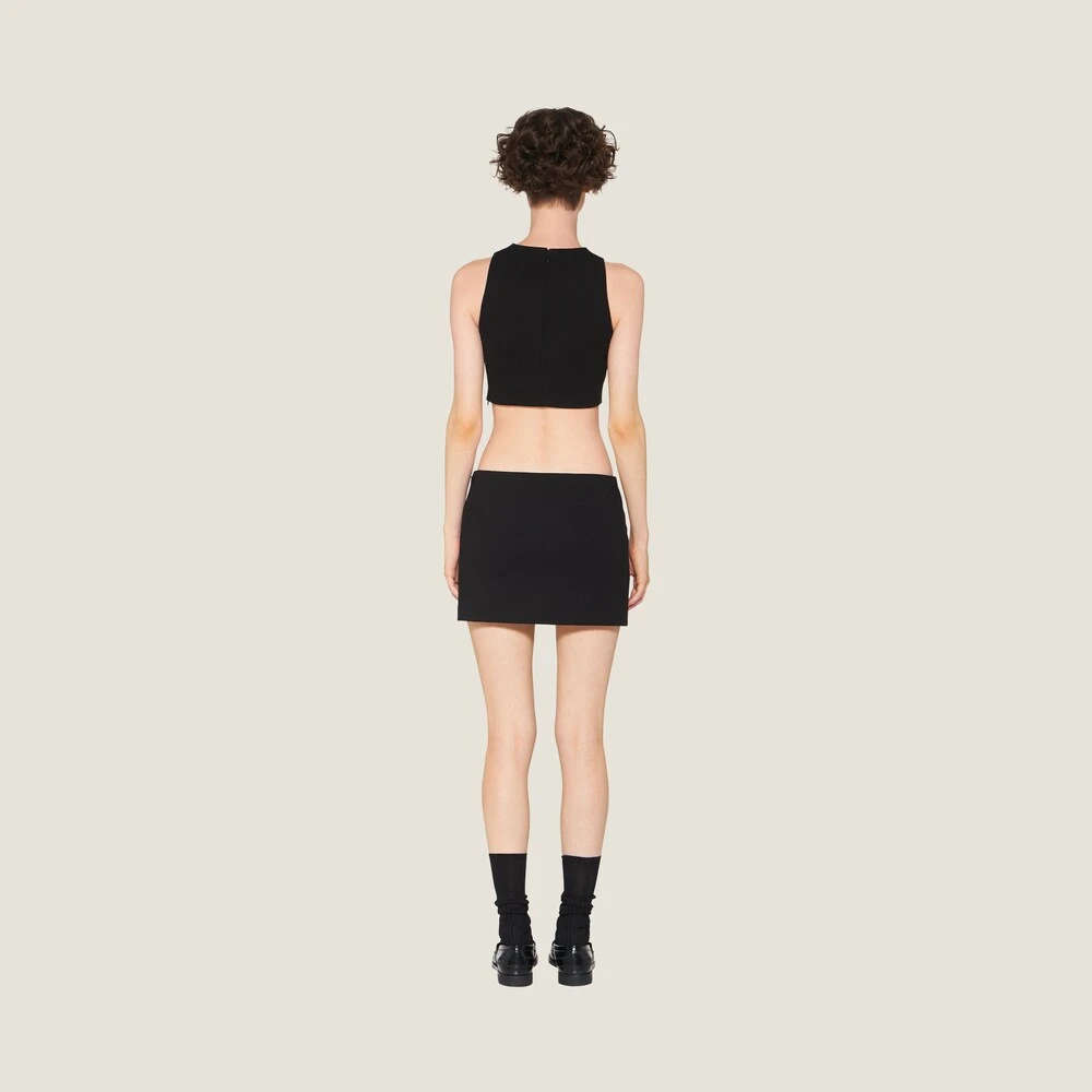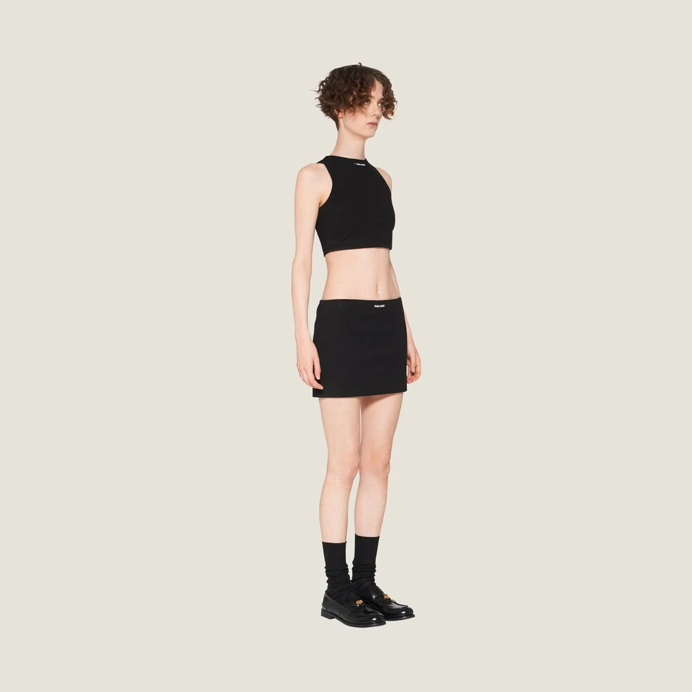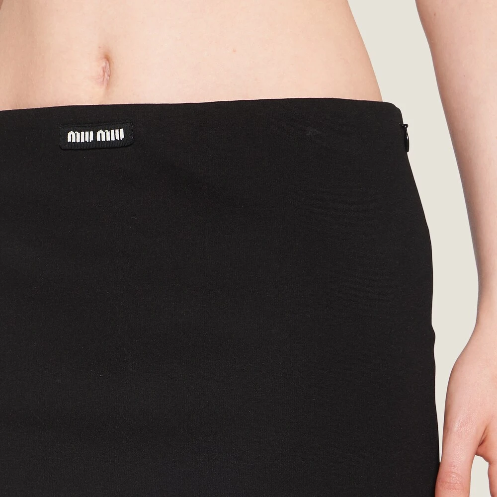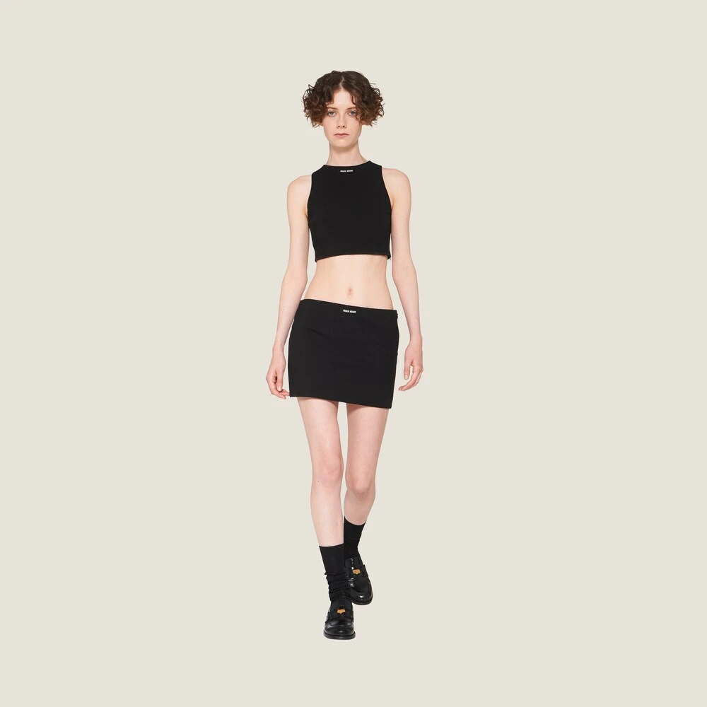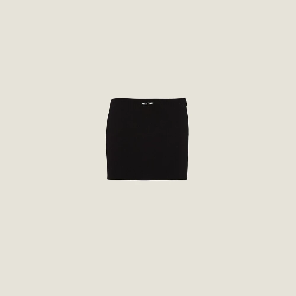 Defined by a sleek design and slim-fit silhouette, this jersey miniskirt is decorated with the Miu Miu knit logo applied on the front.