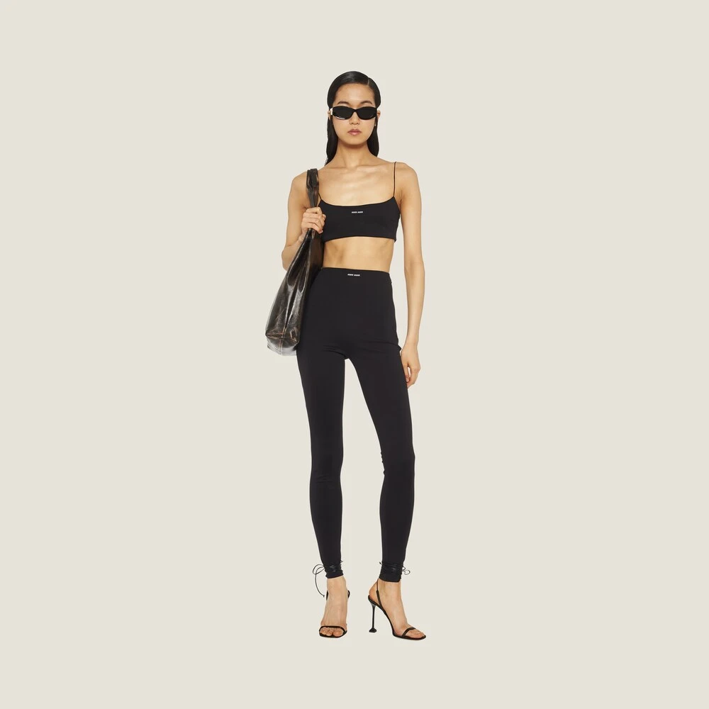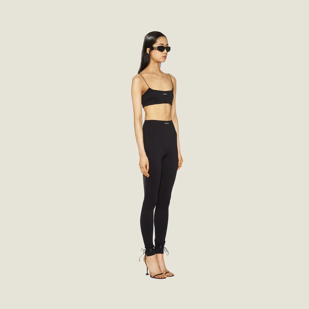 The minimalist design of these form-fitting pants is brightened up by the contrasting Miu Miu logo on the front.