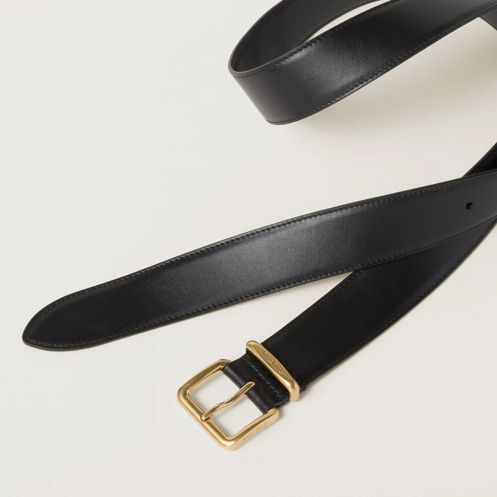 Elegant and minimalist in design, this leather belt is characterized by the Miu Miu logo that embellishes the belt loop.