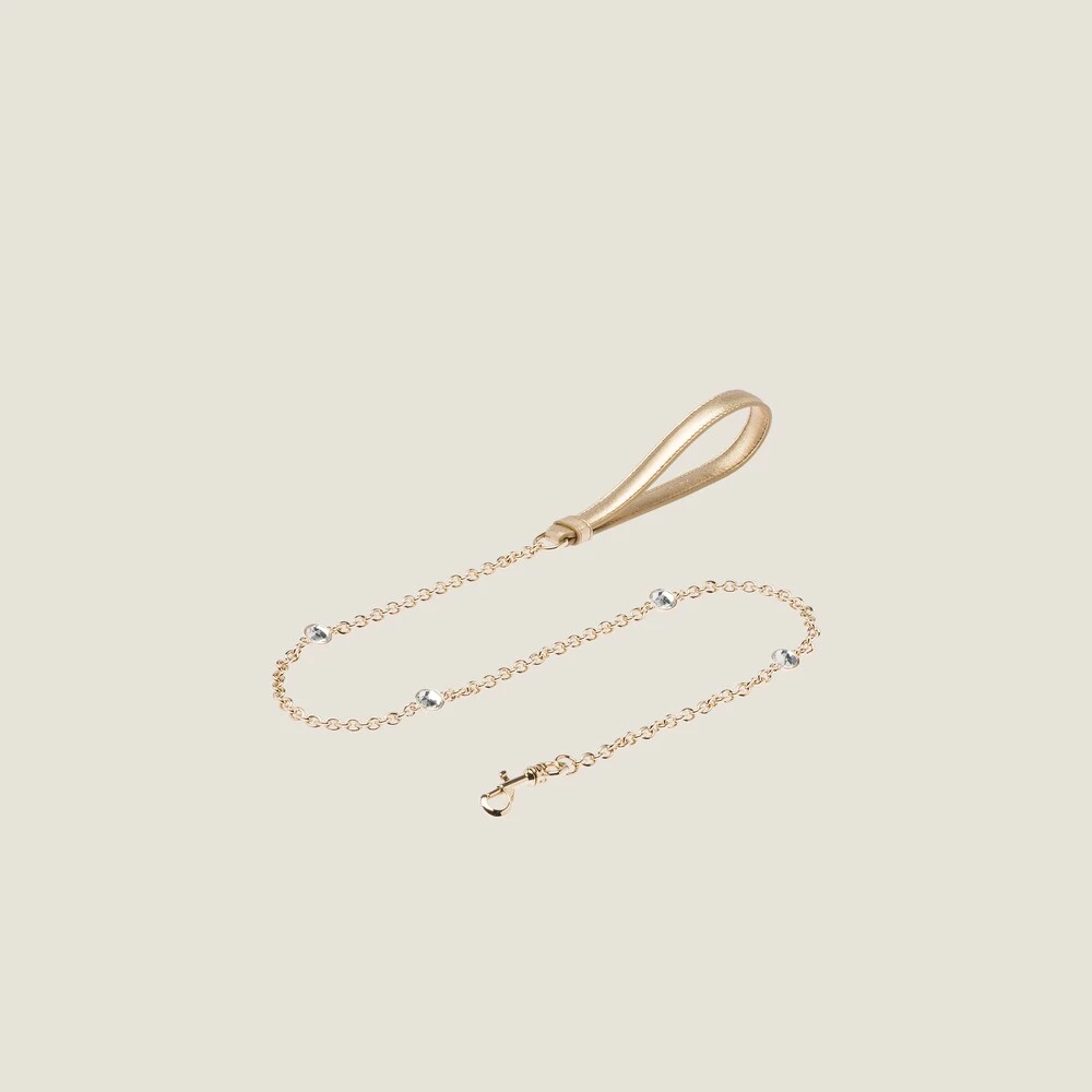 A sophisticated accessory that recalls the world of jewelry, this leather leash is embellished with crystals for a refined touch.