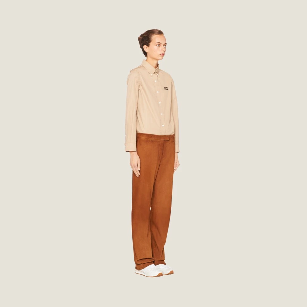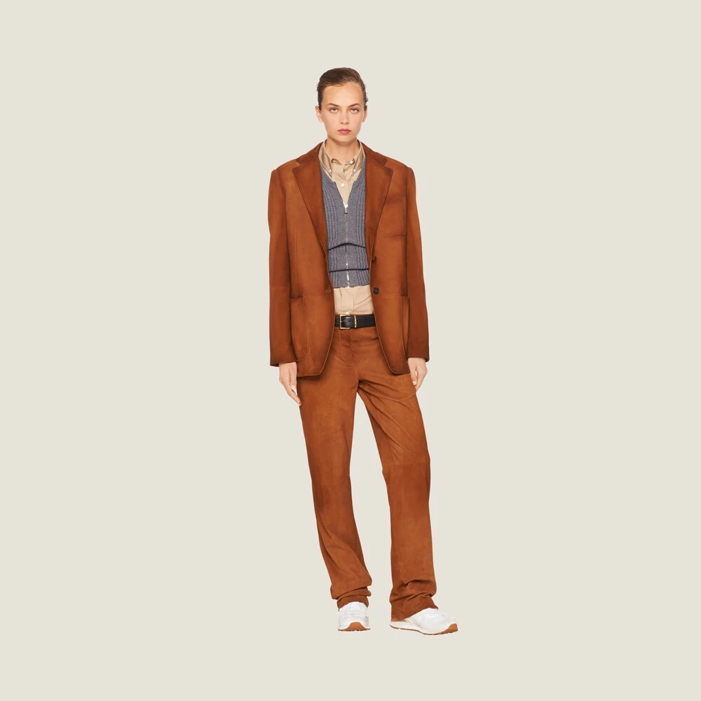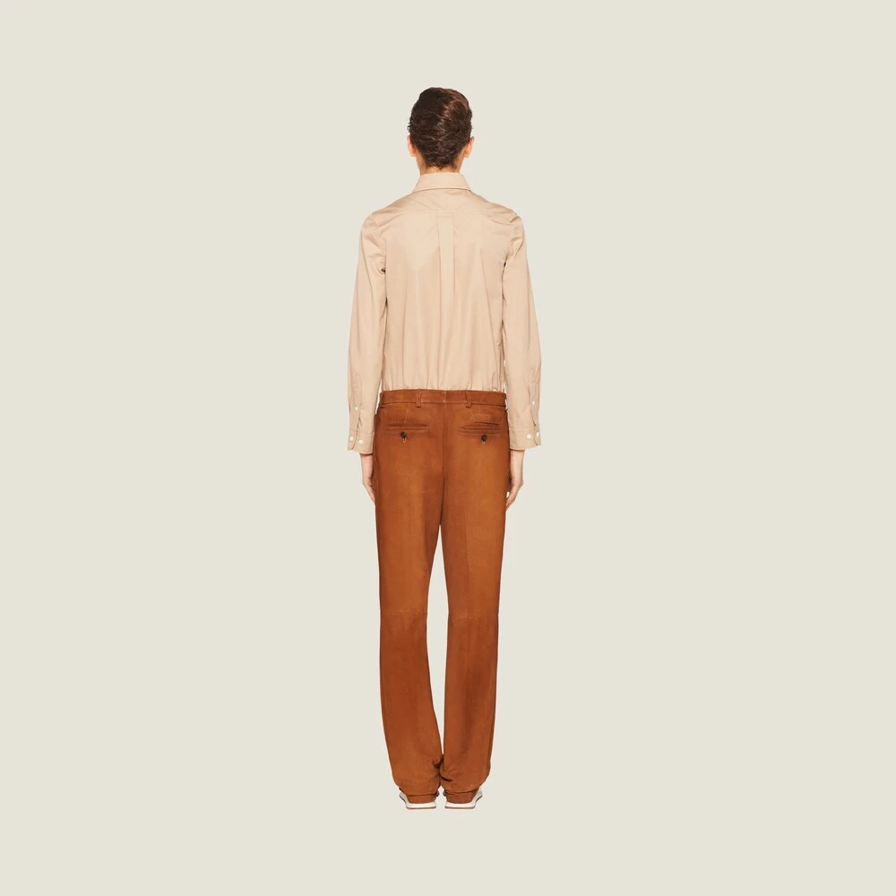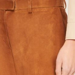Sophisticated lines and fine artisan leatherworking characterize these pants with a classic cut and waxed finish.