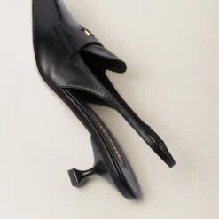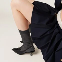 Miu Miu reinterprets the iconic loafer in an ultra-feminine, glamorous and irreverent version. The tapered lines and distinct character are paired with classic details. In the 1950s, loafers were part of the uniform of American prep school and college students. Students against wearing the required attire started inserting a one cent coin in the slot of the band, which led to it being called the Penny Loafer. The embossed logo on the tongue completes the shoe with a distinctive note.