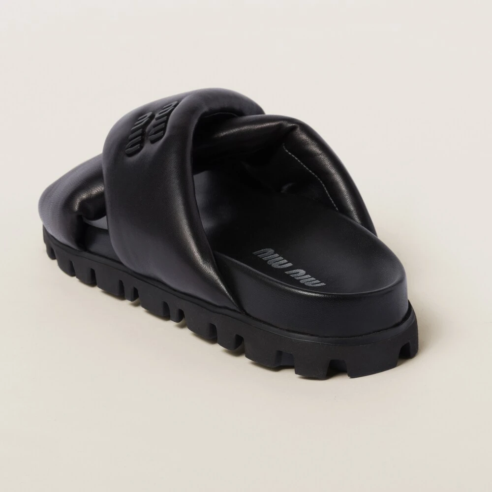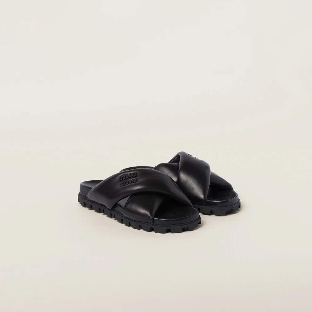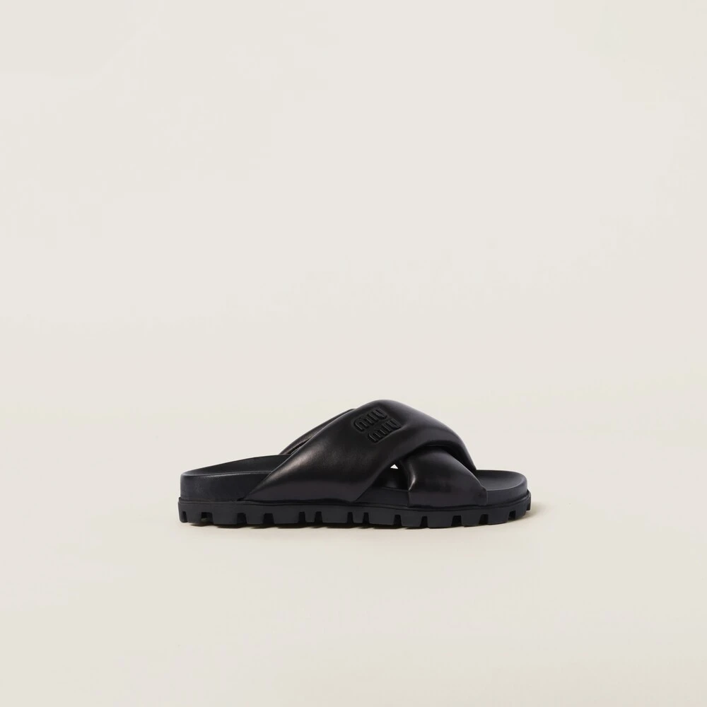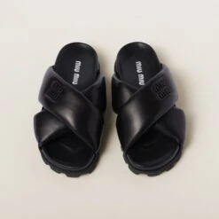 The sportswear world meets relaxed style and a captivating design in these new leather slides. The hot-stamped logo, which stands out on one of the crisscross bands, completes the footwear with a distinctive note.