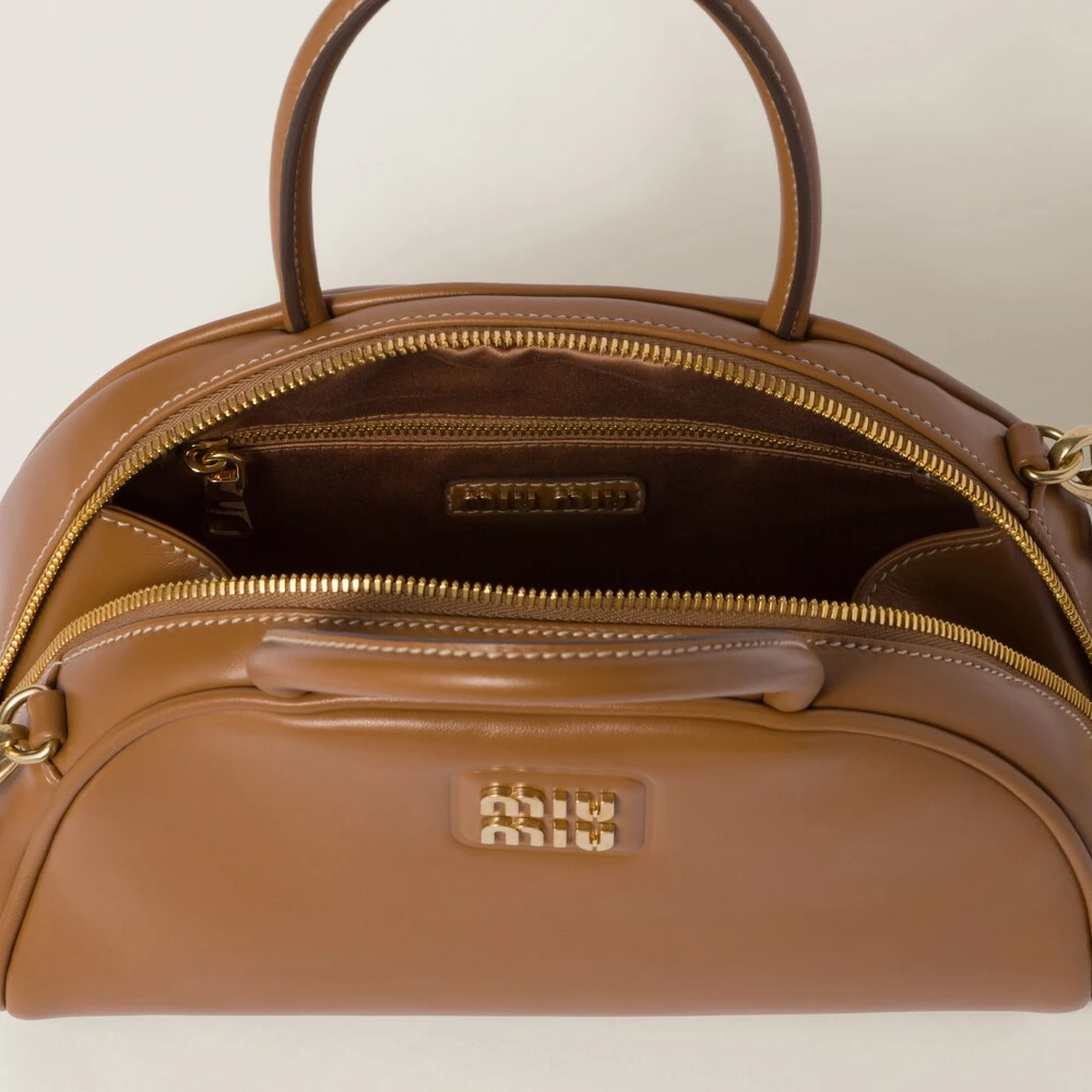 Miu Miu reimagines the iconic top-handle bag in a sophisticated, contemporary, and versatile design. The bag made of soft leather is the result of refined craftsmanship. The lettering logo completes the design with an iconic and distinctive note.