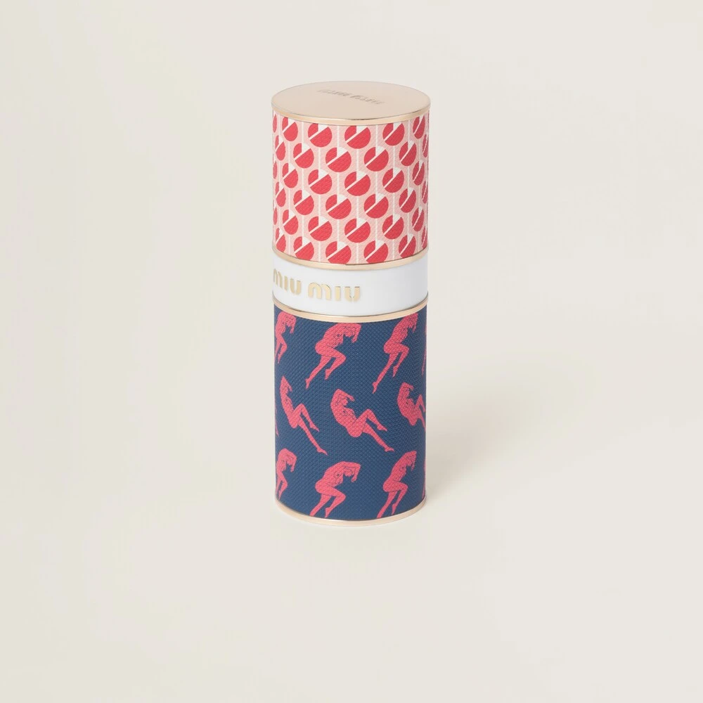 Create a customized case and dress your fragrance: select a top and bottom cover, both decorated with iconic Miu Miu prints.
