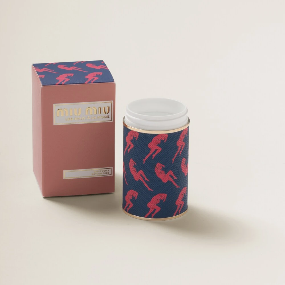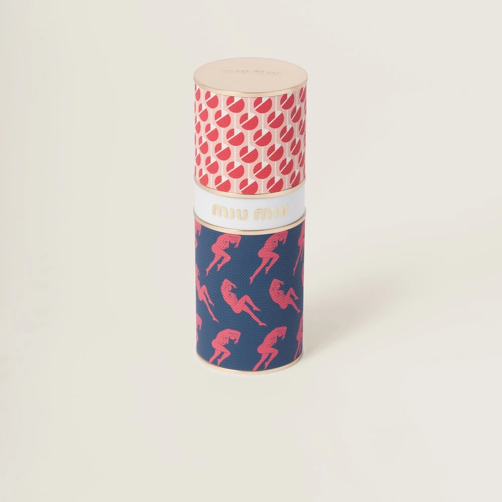 Create a customized case and dress your fragrance: select a top and bottom cover, both decorated with iconic Miu Miu prints.