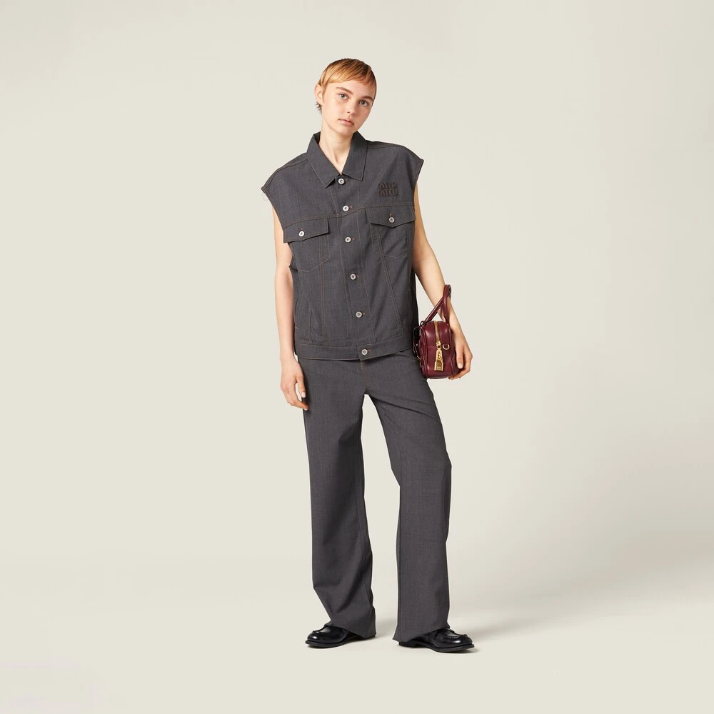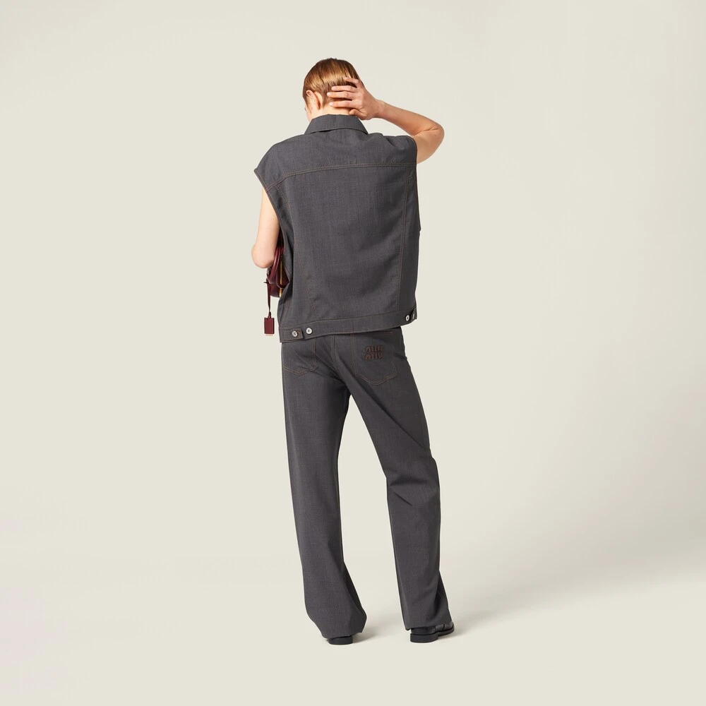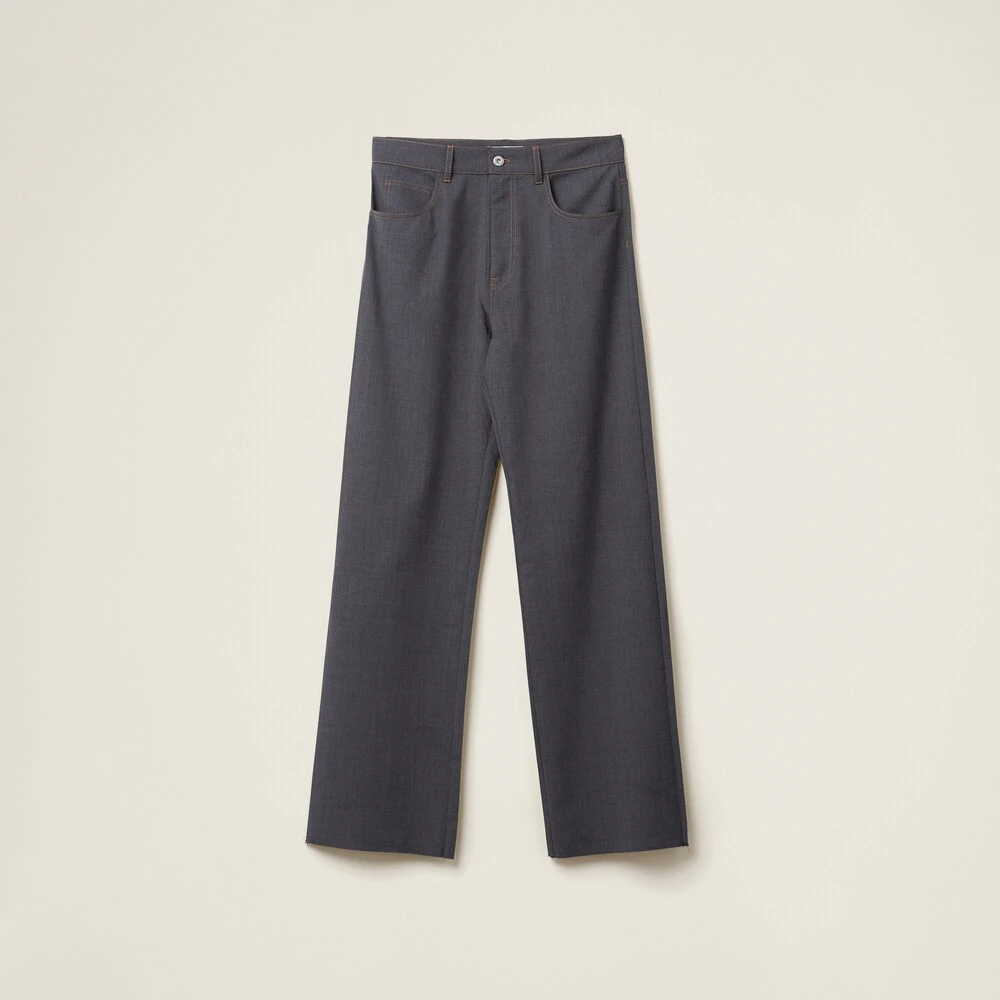 Typical denim details come to life in these new light wool pants. The top-stitching and curved inset pockets recall jeans, while the wool helps to create relaxed lines. The embroidered logo on the back completes the aesthetic of the garment with a distinctive and iconic note.