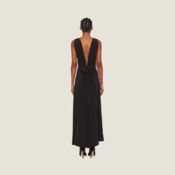 Ethereal, timeless elegance comes to life in the flowing silhouette of this crepe de chine dress. The lightweight fabric is characterized by gathers and tucks that add movement to the design.