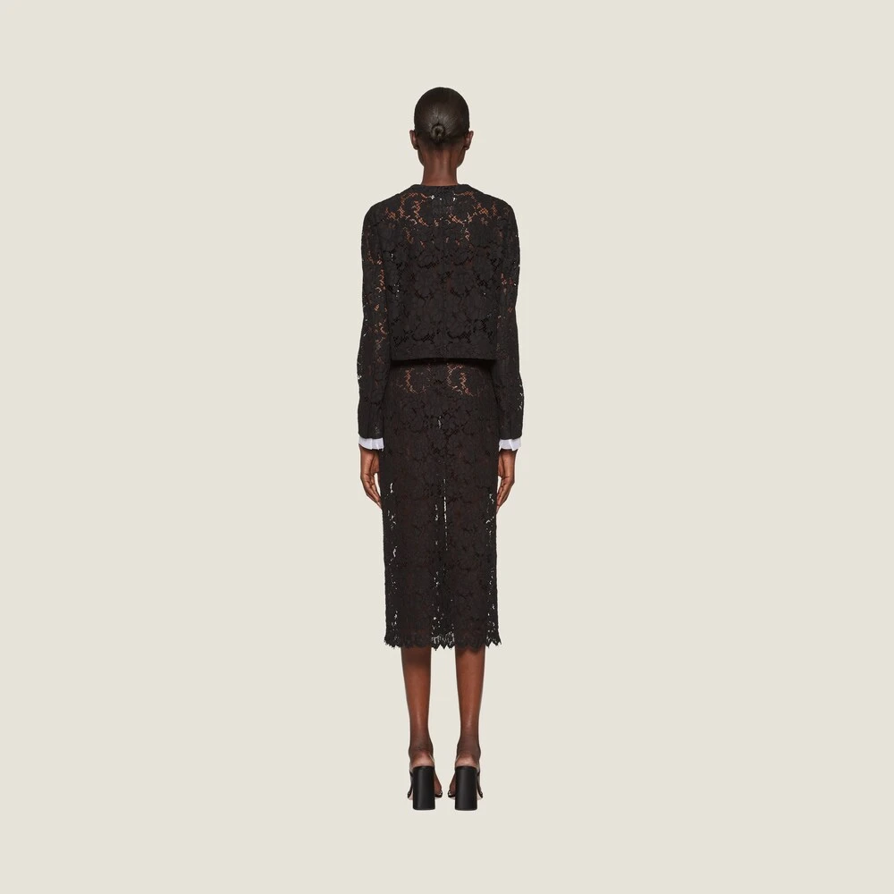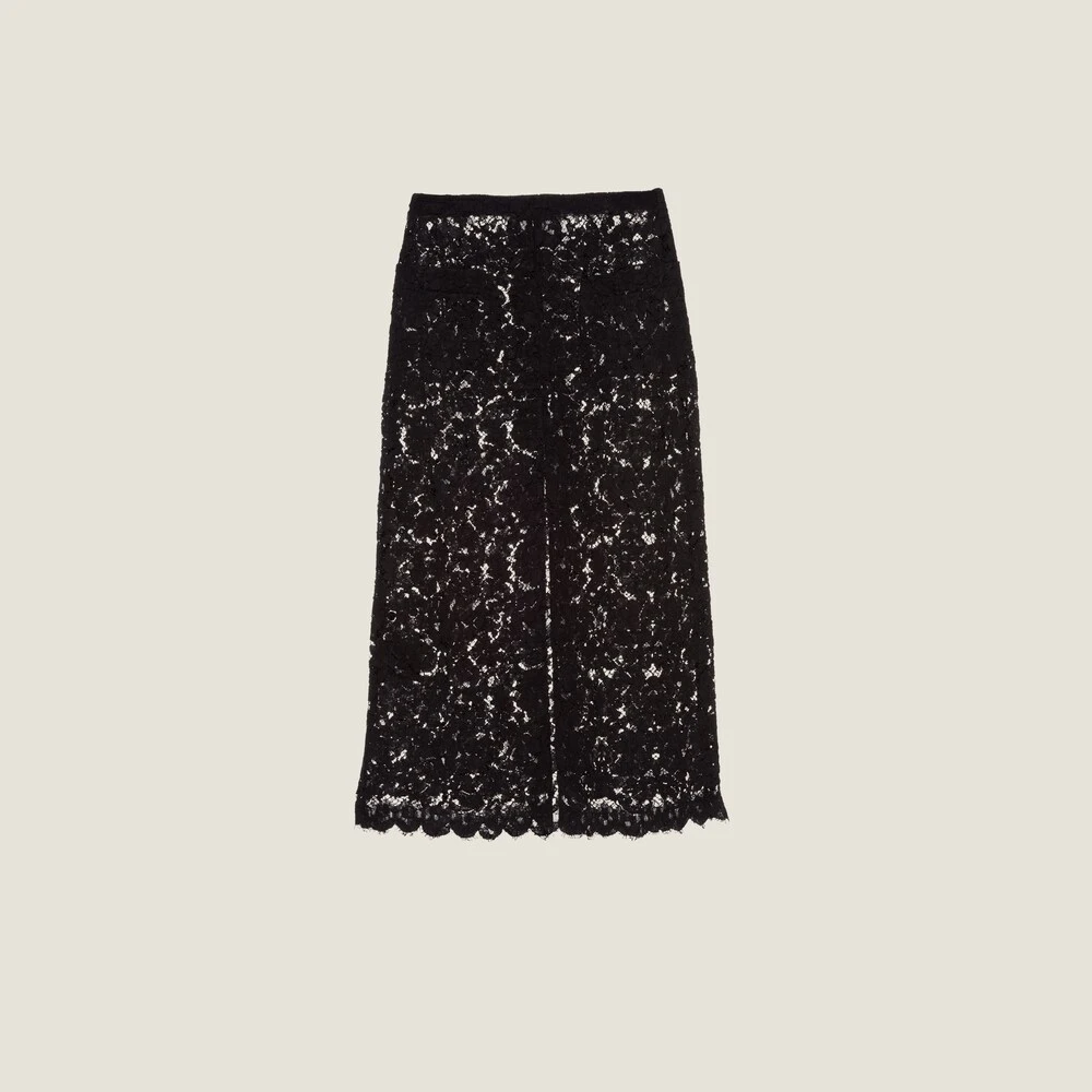 Sophisticated skirt with a feminine silhouette and exquisite details. This style is made from refined lace and completed by a front hook-and-zipper fastening.
