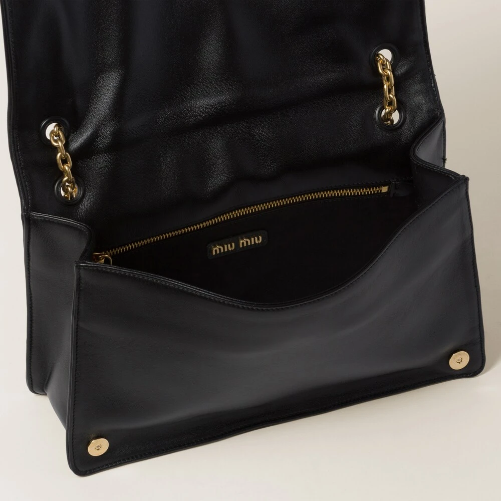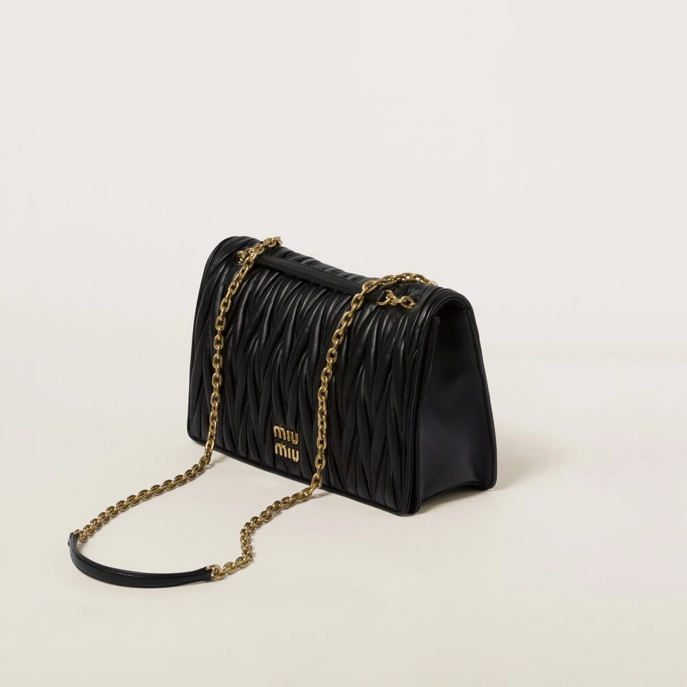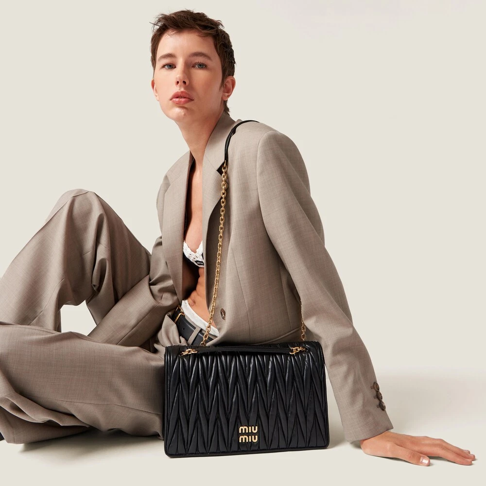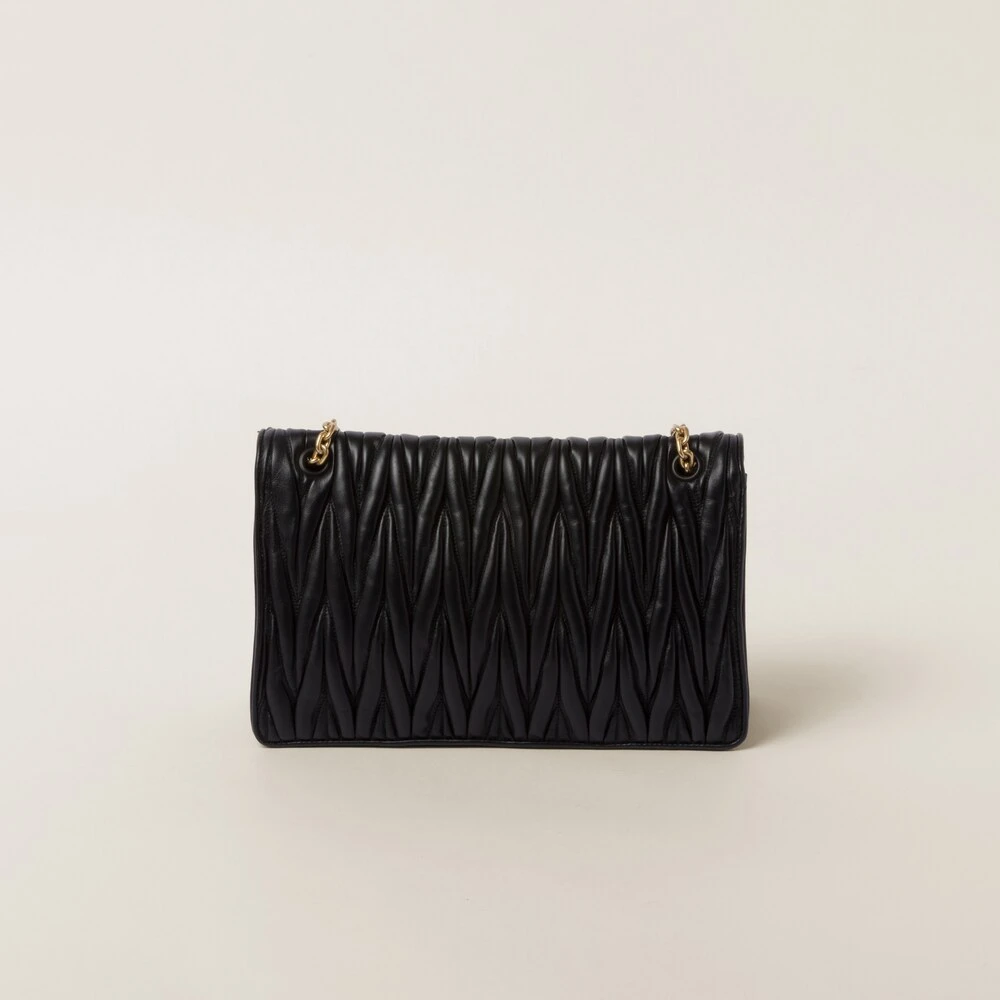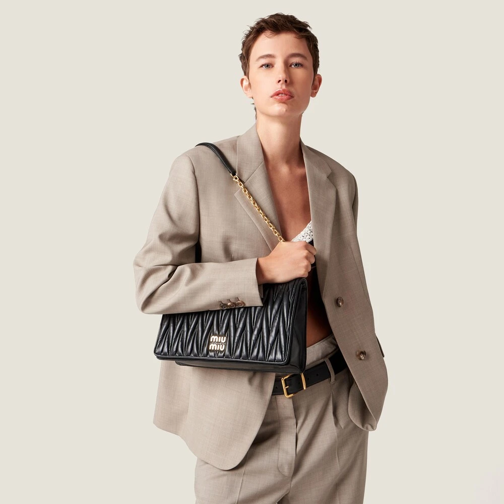 Fine matelassé workmanship creates an extremely sophisticated, textured, and three-dimensional effect on this new nappa leather bag. The lettering logo on the flap, which echoes the different metallic finishes of the hardware, stands out against the refined artisan workmanship with an iconic and immediately recognizable feel. Compact lines and the double handle define the elegant yet dynamic silhouette.